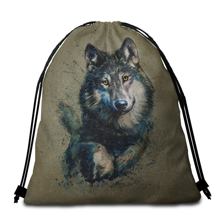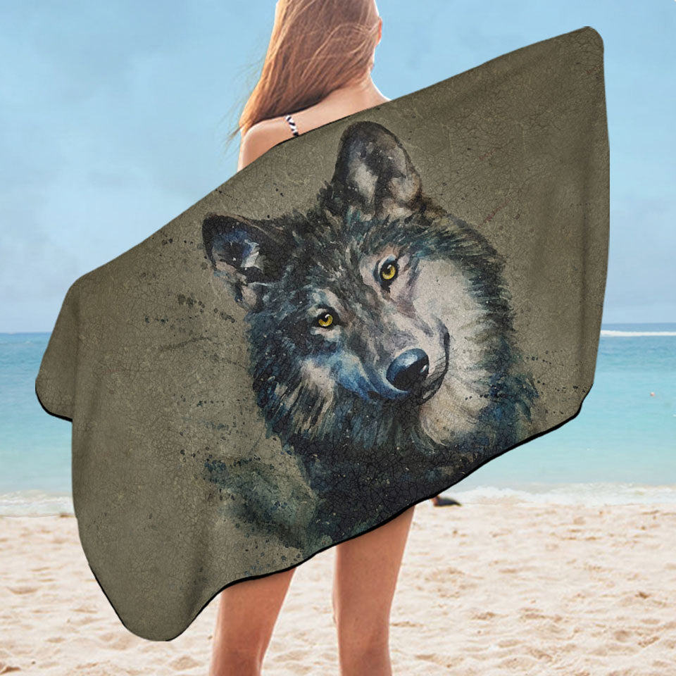Cool Art Wolf Painted on Concrete Microfiber Beach Towel