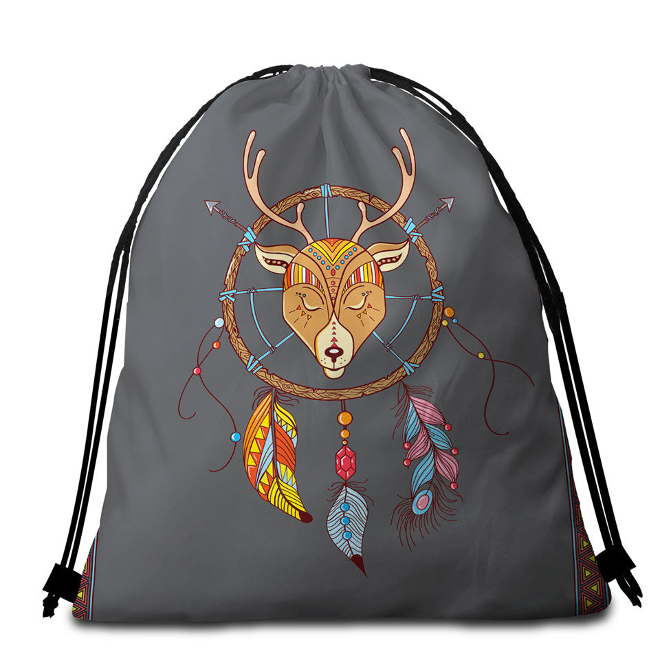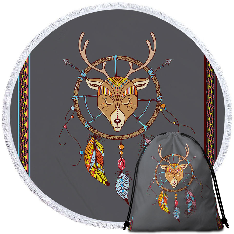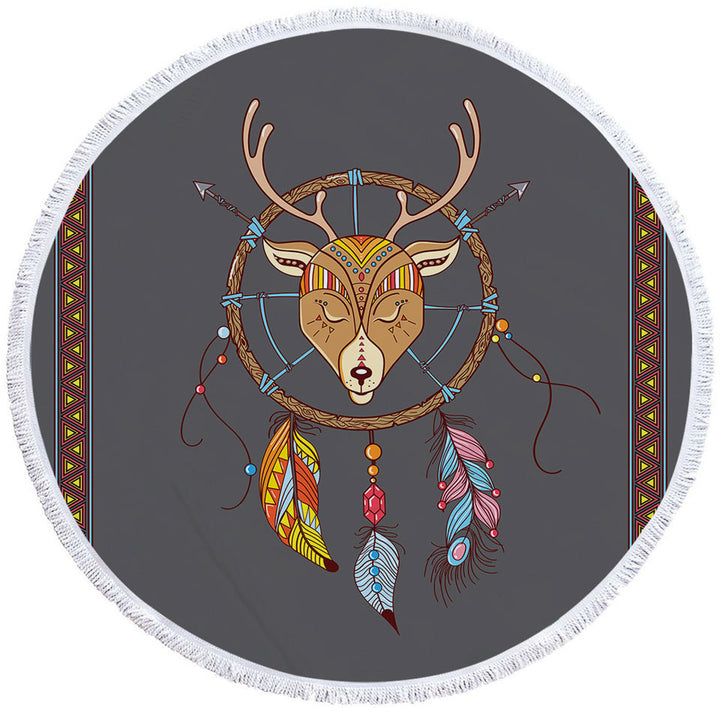 Cute Native Deer Dream Catcher for Kids Round Beach Towel