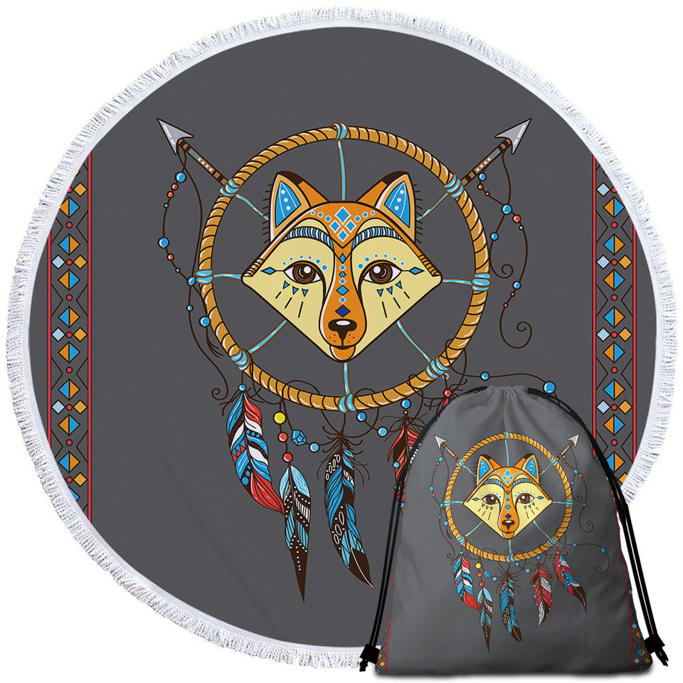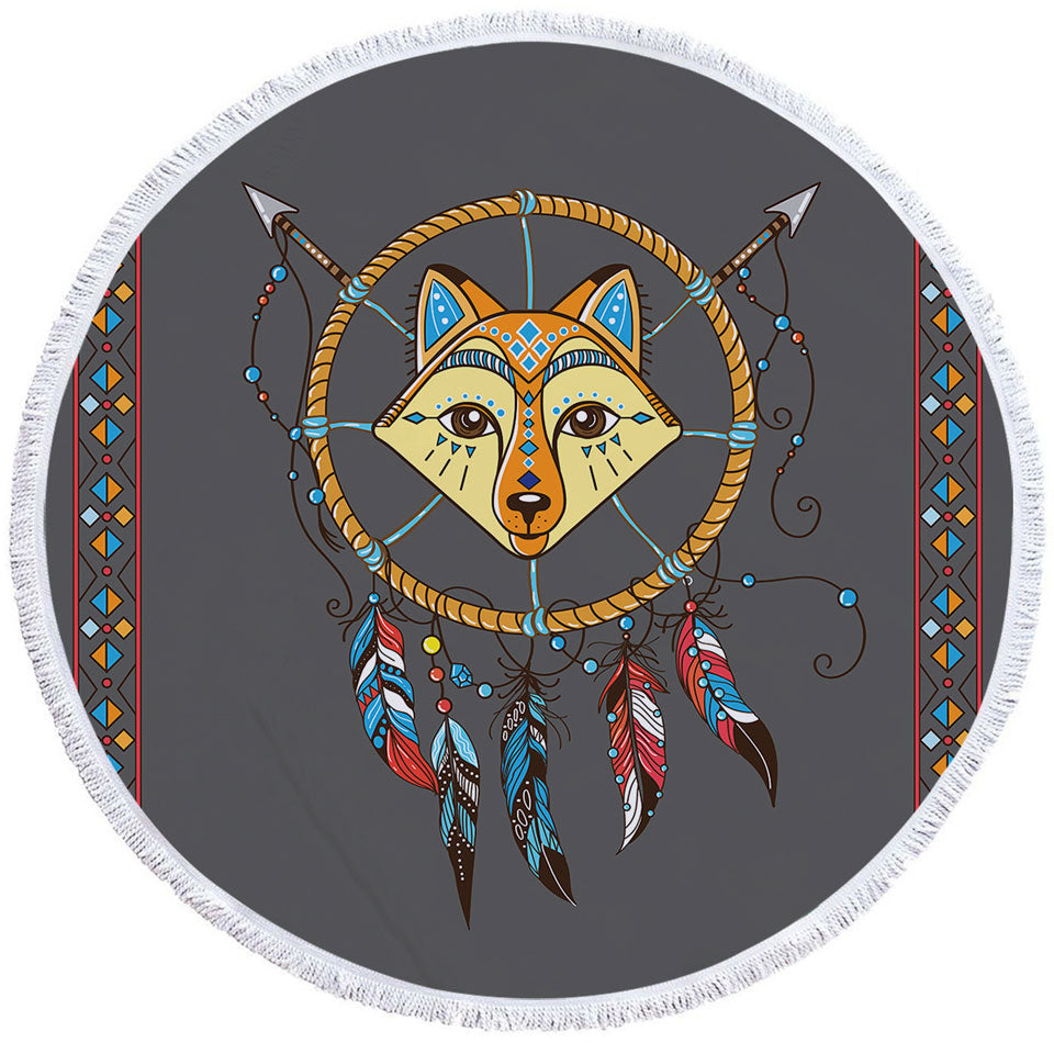 Cute Native Fox Dream Catcher for Kids Round Beach Towel