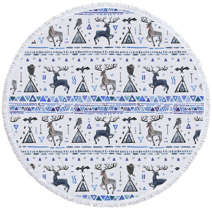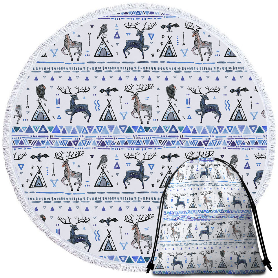Purplish Native American Art Pattern Stripes Round Beach Towel