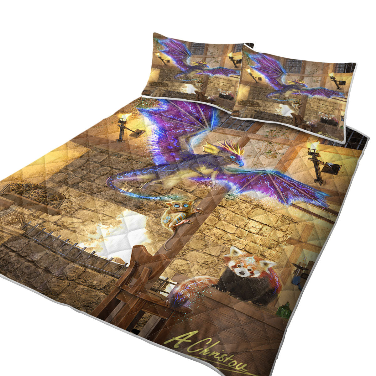 Purchase a quilt that features unique artwork.