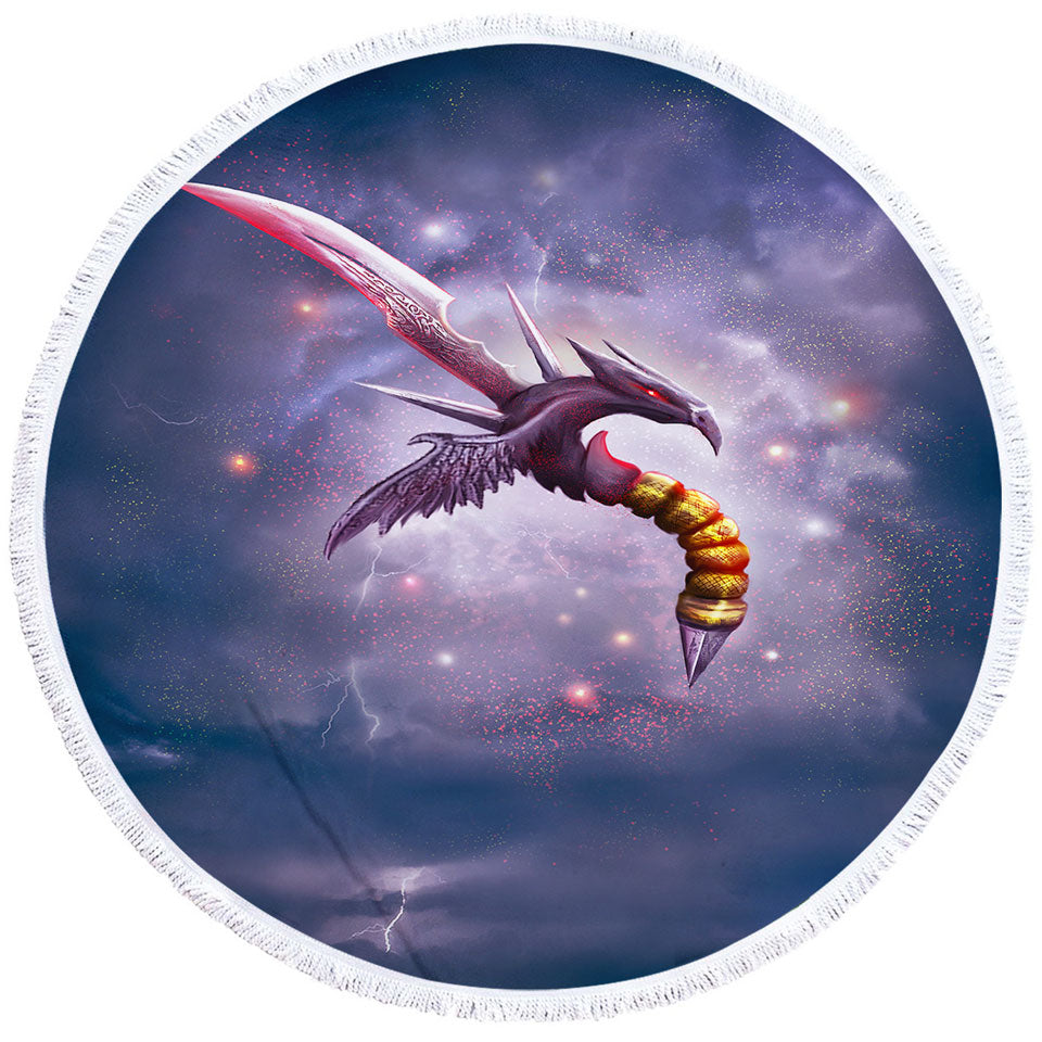 Cool Dark Dragon Blade Fiction Art Round Beach Towel