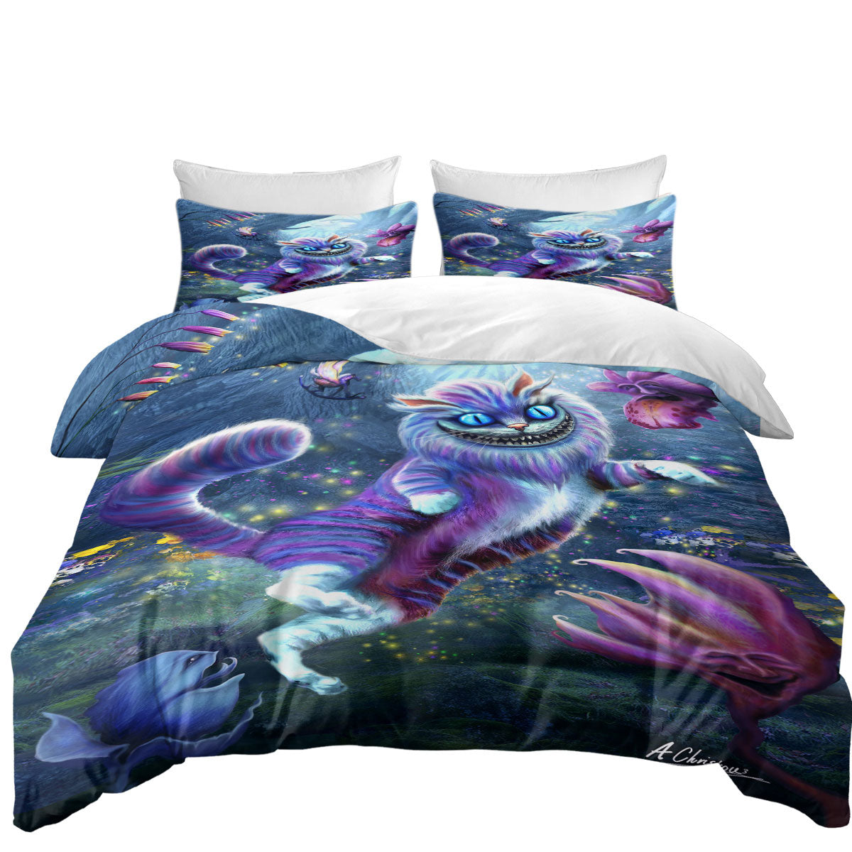 Artistic Blue Eyed Wonderland Cat Duvet Cover