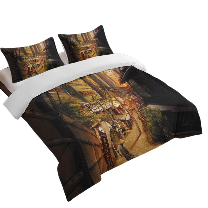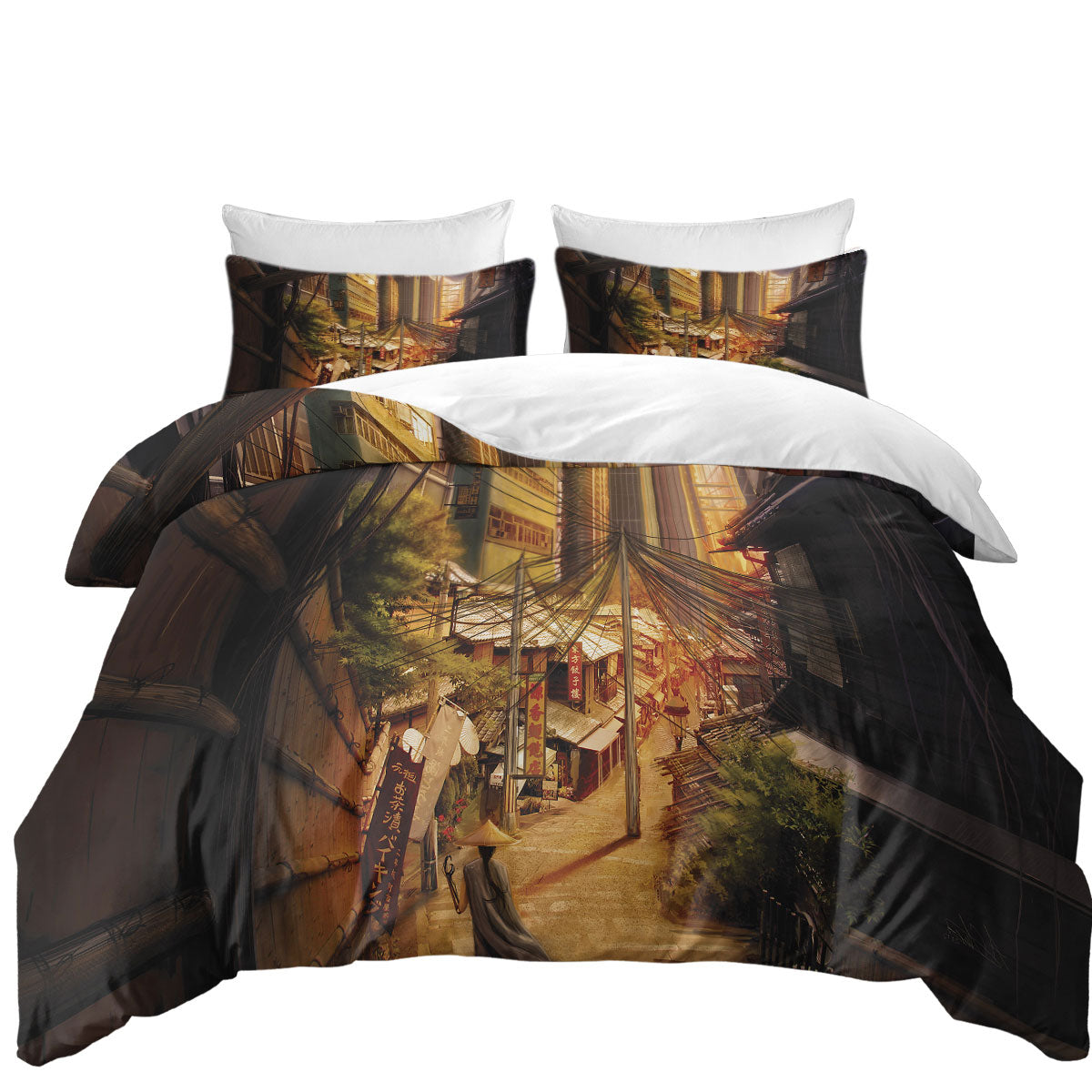 Bed Covers with Asian Art Painting Tokyo City Markets