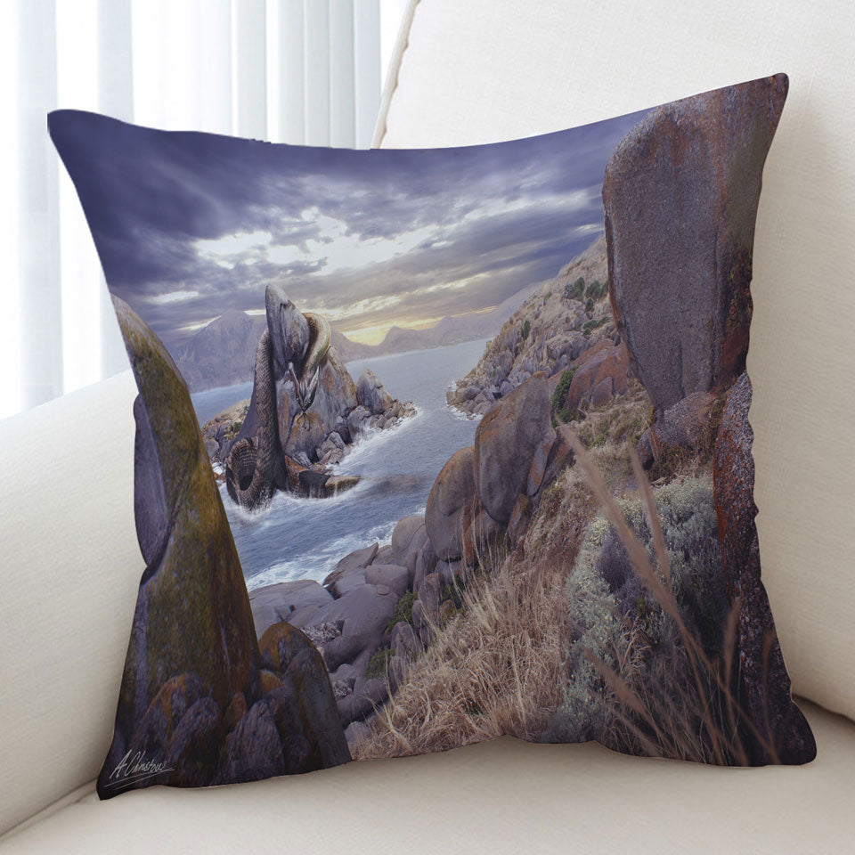 Cool Snake Dragon Monster on the Beach Throw Pillow