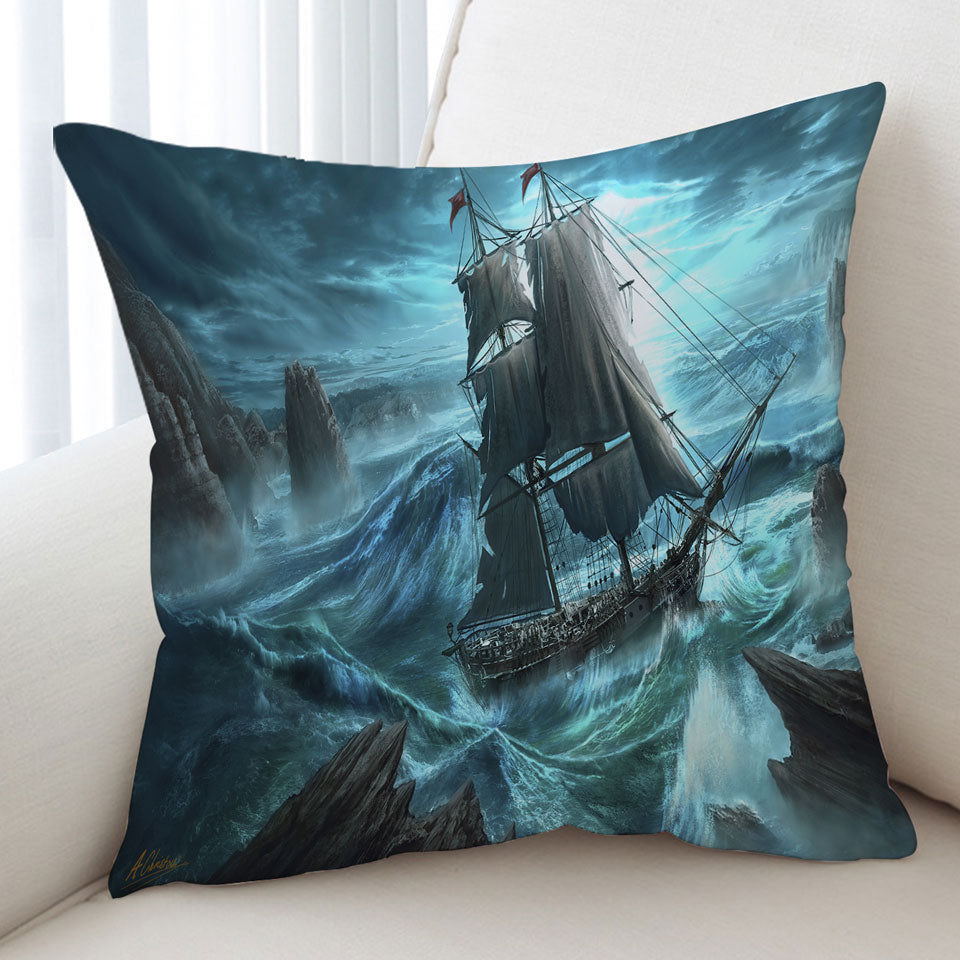 Sailing Ship in the Dangerous Seas Throw Pillow