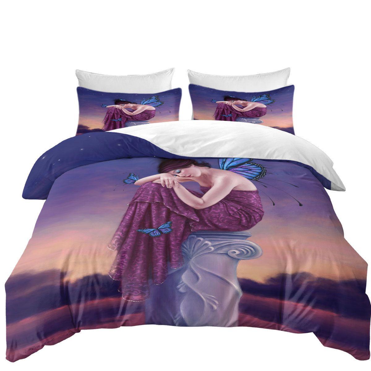 Art Painting Sunset Sleepy Butterfly Girl Duvet Cover