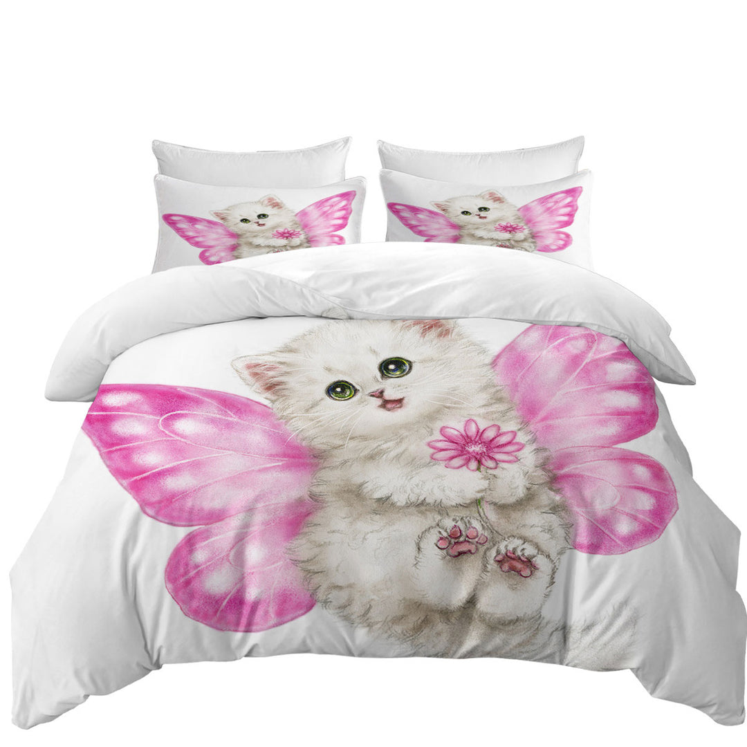 Duvet Covers with Fun Cats Cute Pink Fairy Kitten
