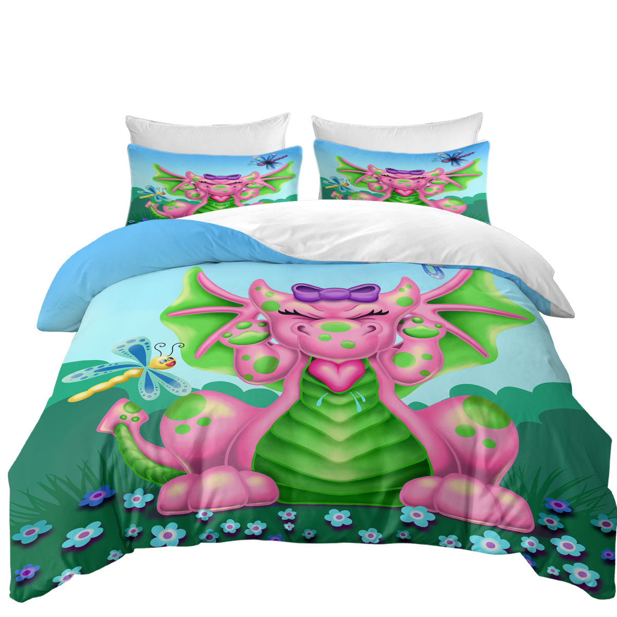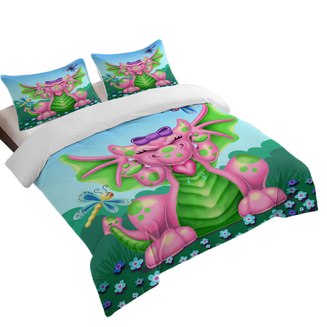 Cute Dragonflies vs Girl Pink Dragon Duvet Cover