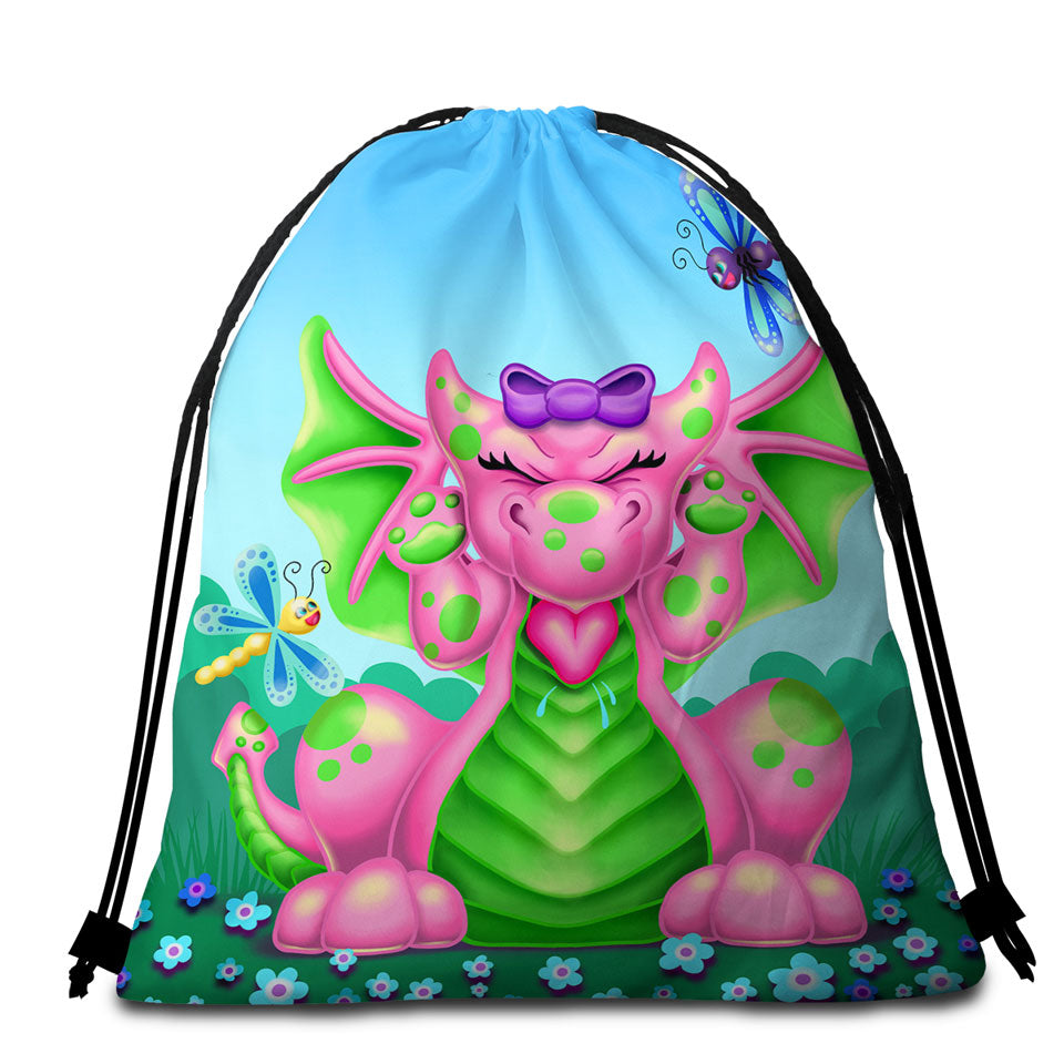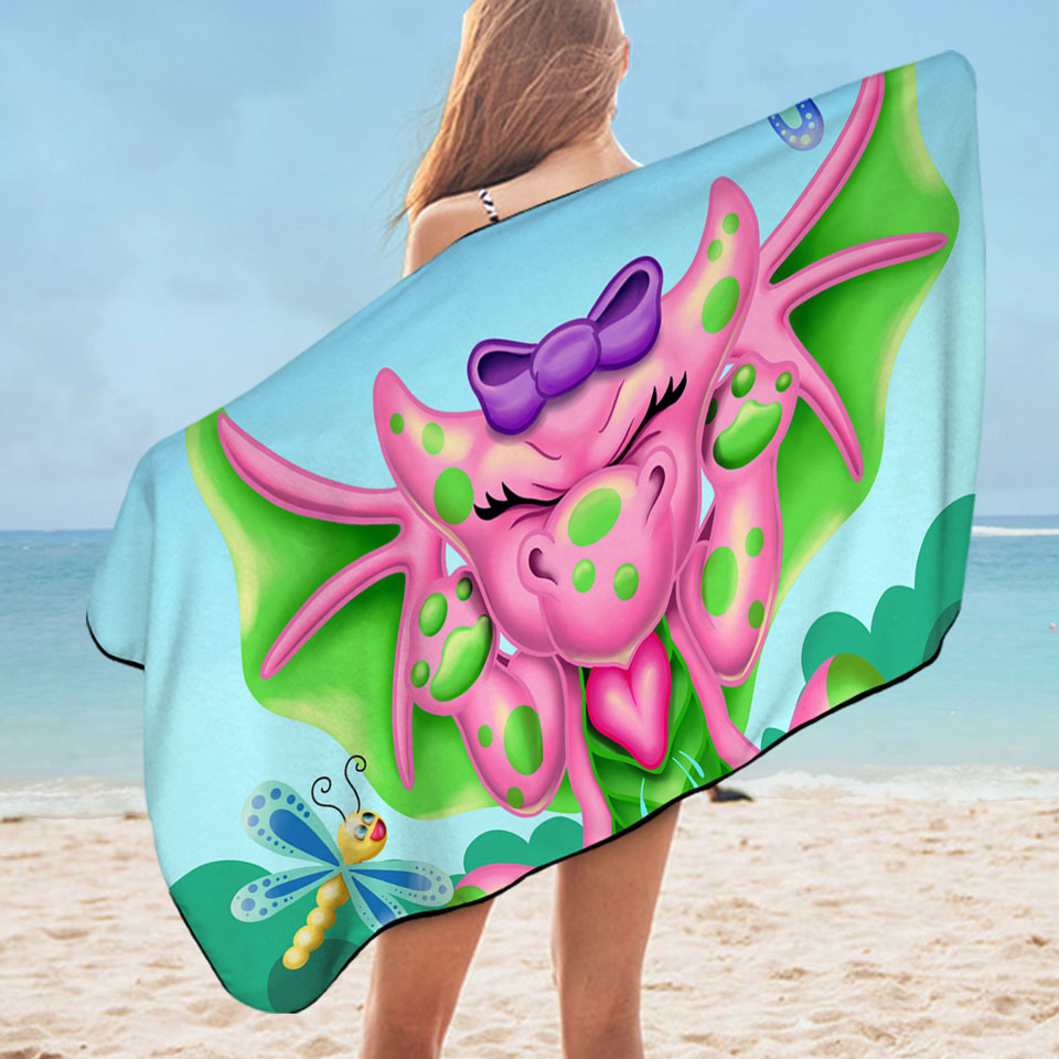 Cute Dragonflies vs Girl Pink Dragon Microfiber Beach Towel