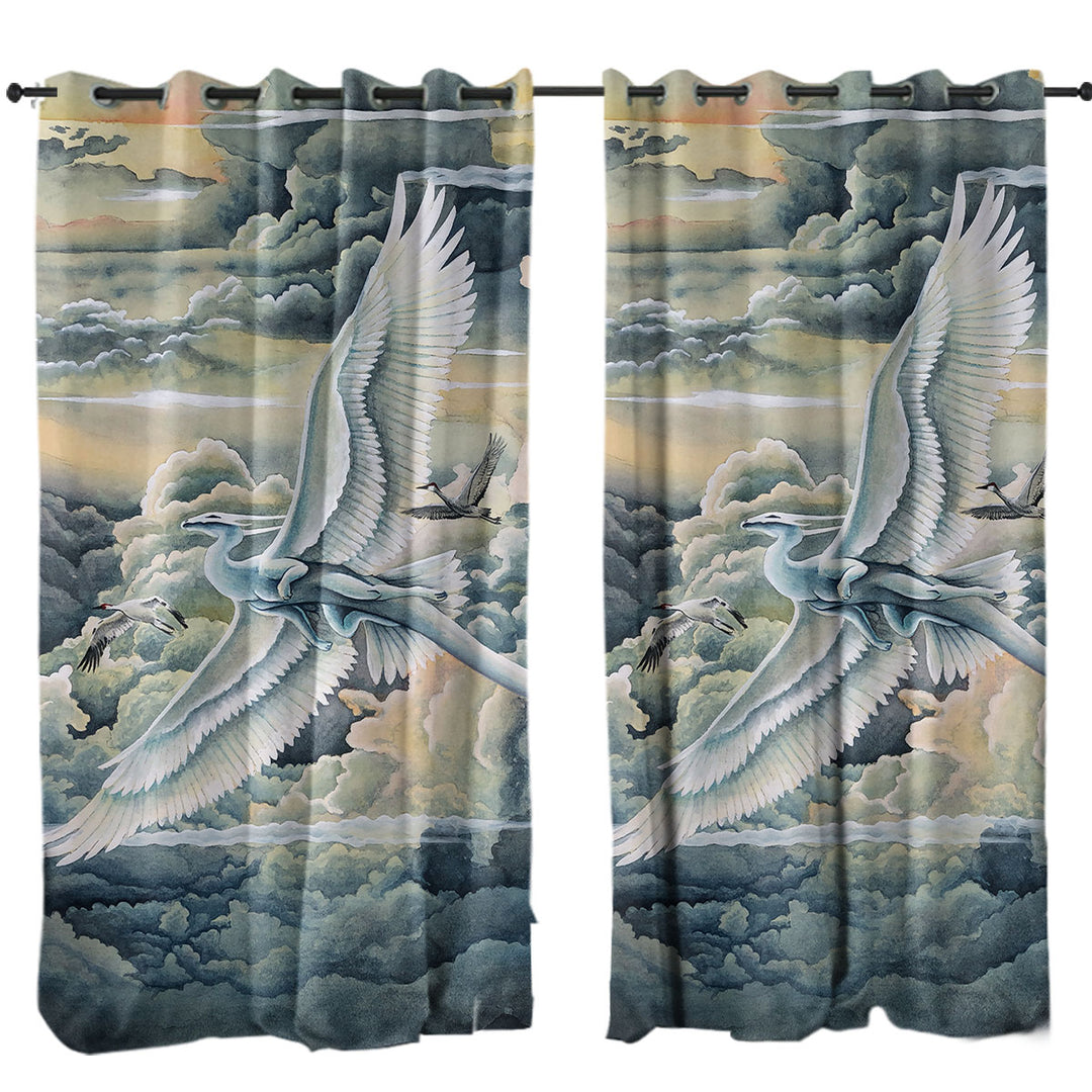 Fantasy Art Soaring Wonders Storks and Dragon Curtain
