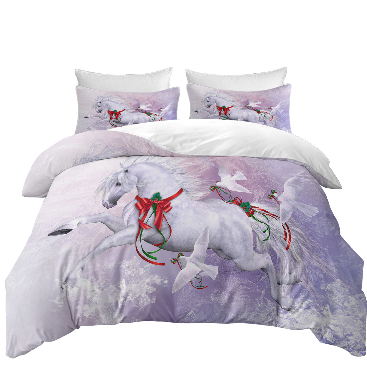 Christmas Spirit Horse and Doves the Snow Dance Duvet Cover