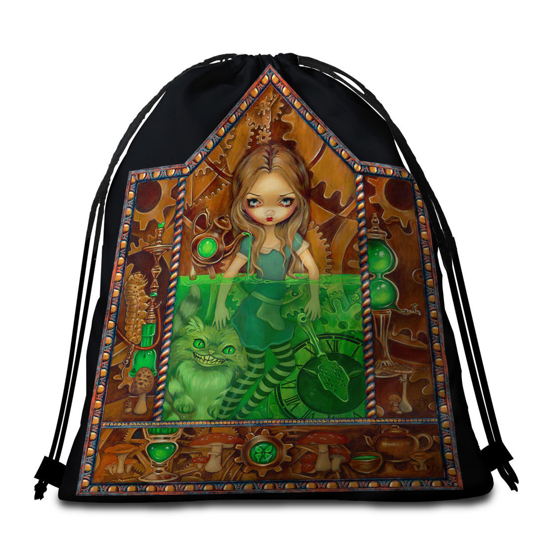 Dark Fantasy Alice in Absinthe Round Beach Towel