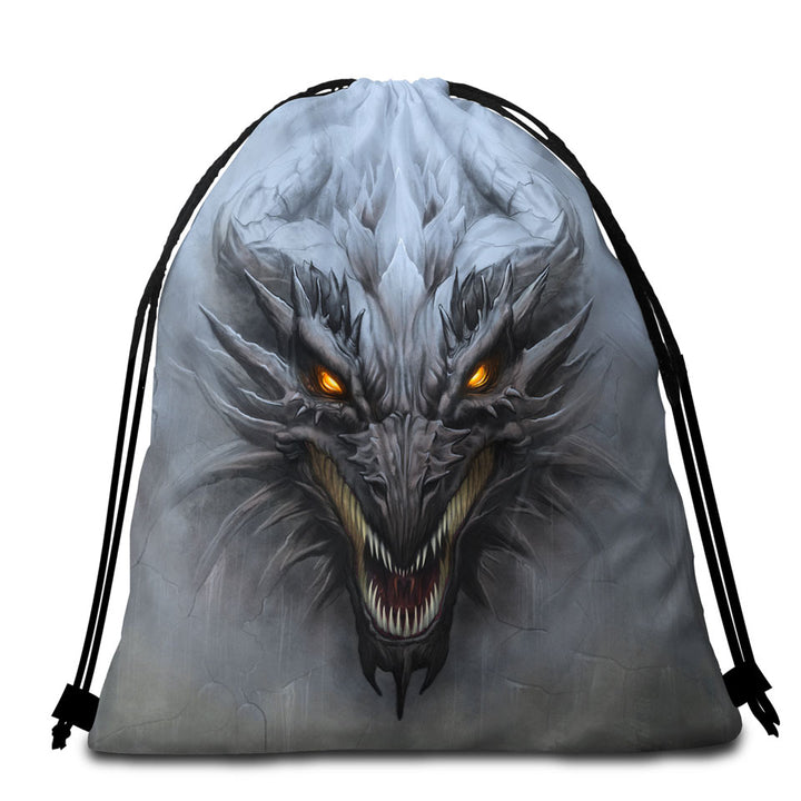 Grey Concrete Scary Dragon Round Beach Towel