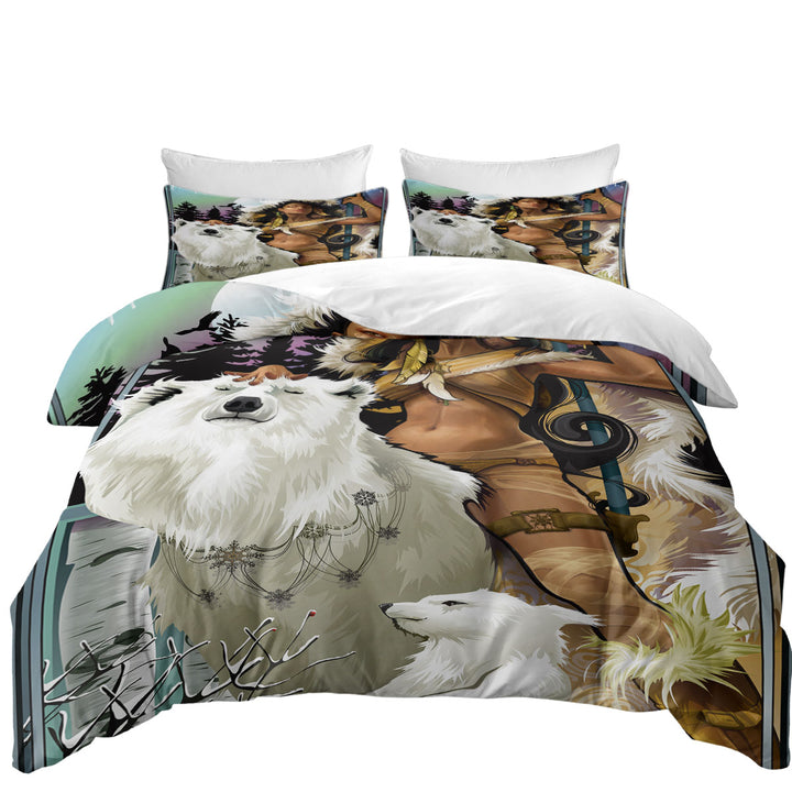 Attractive Hunter Lady with Her Bears Duvet Cover