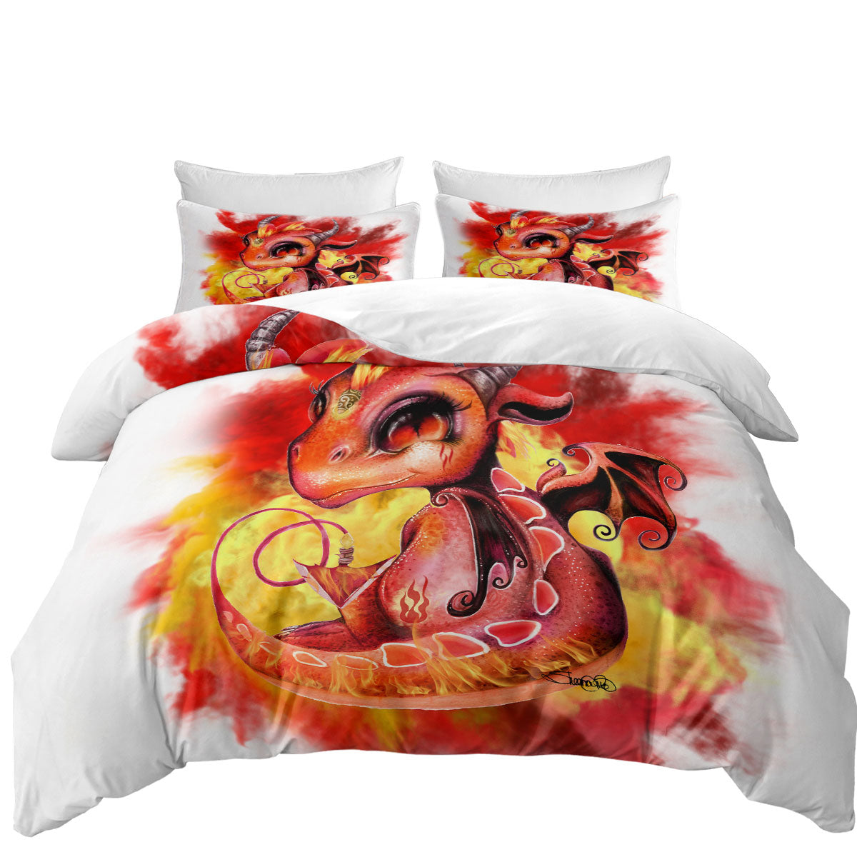 Twin Duvet Covers with Cool Kids Fire Flames Lil Dragon