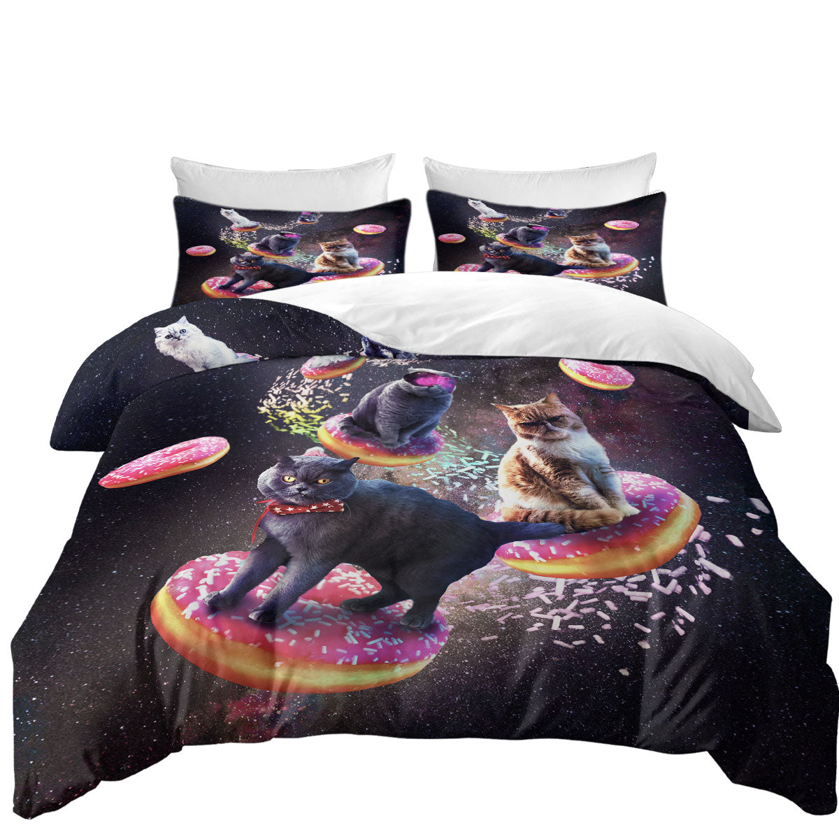 Cool Space Galaxy Cats Riding Donuts Duvet Cover
