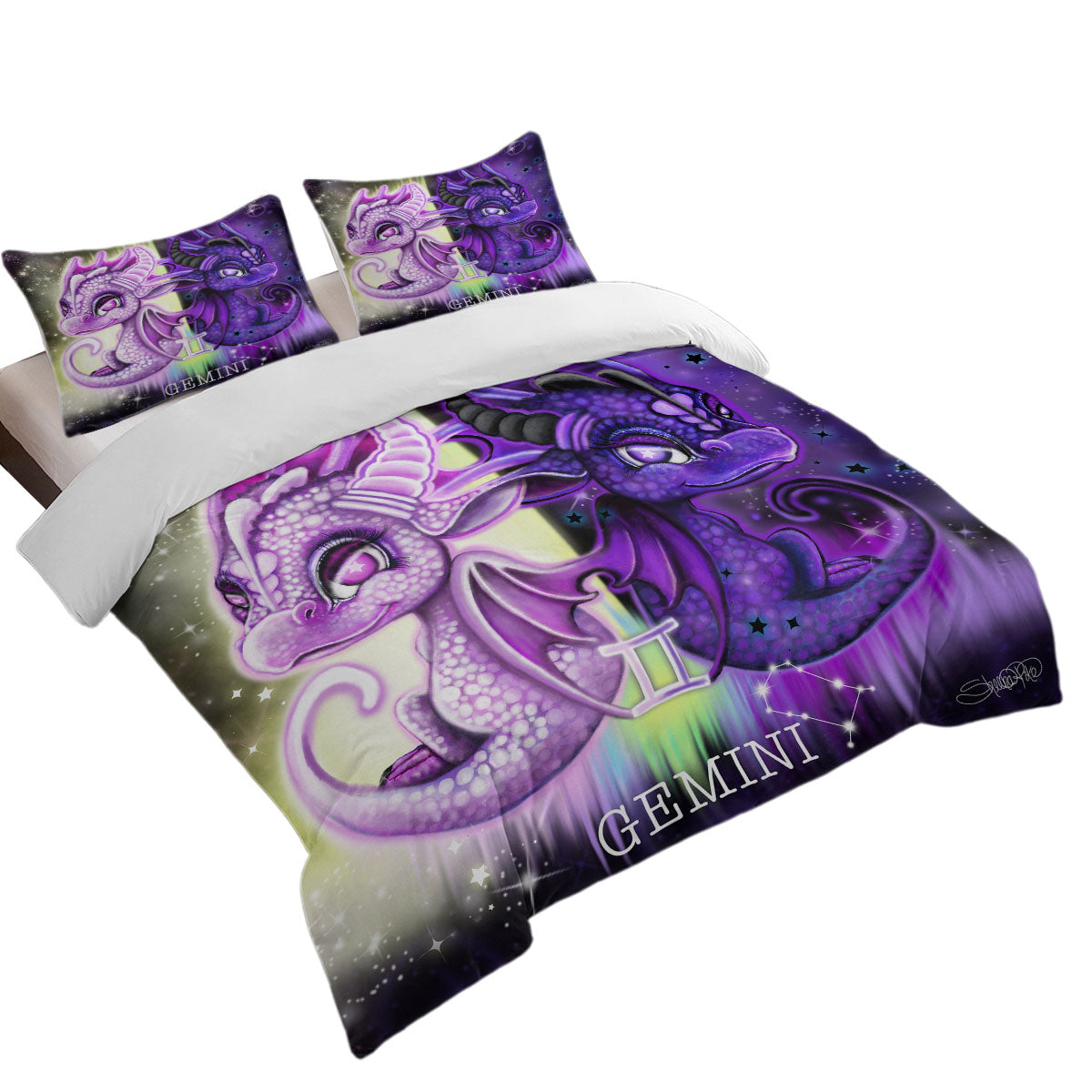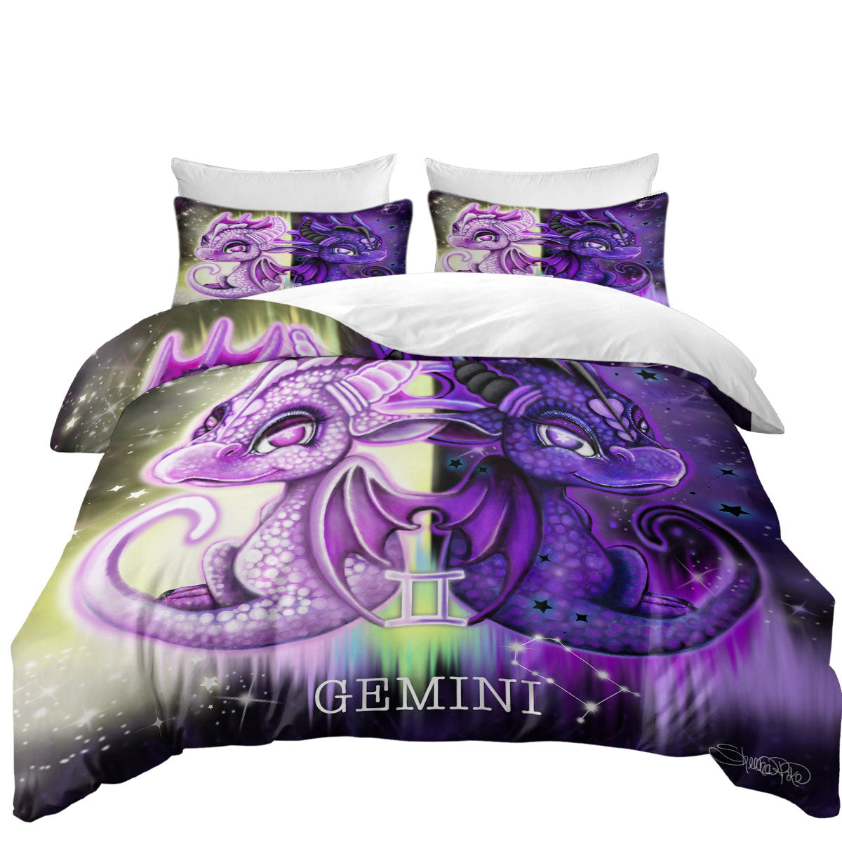 Purplish Cute Gemini Lil Dragons Duvet Cover