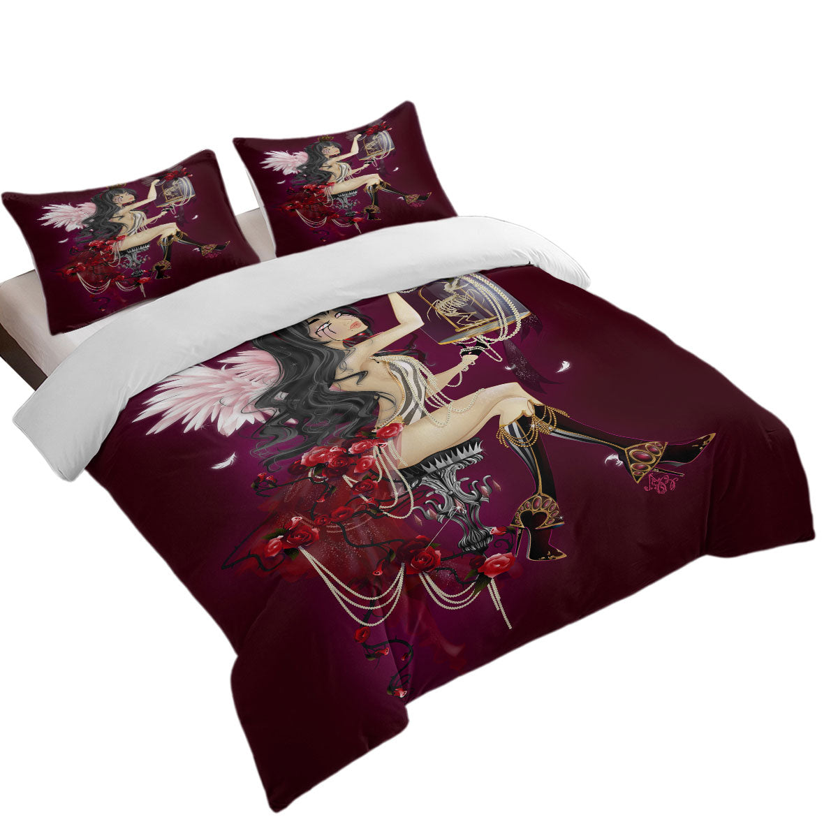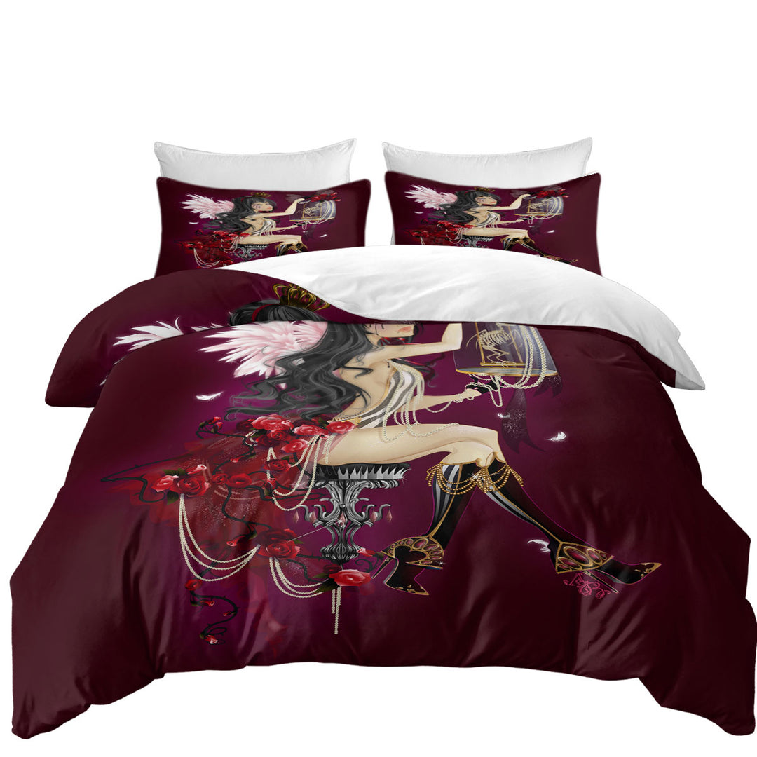 Sexy Goth Queen Roses and Pearls Duvet Cover