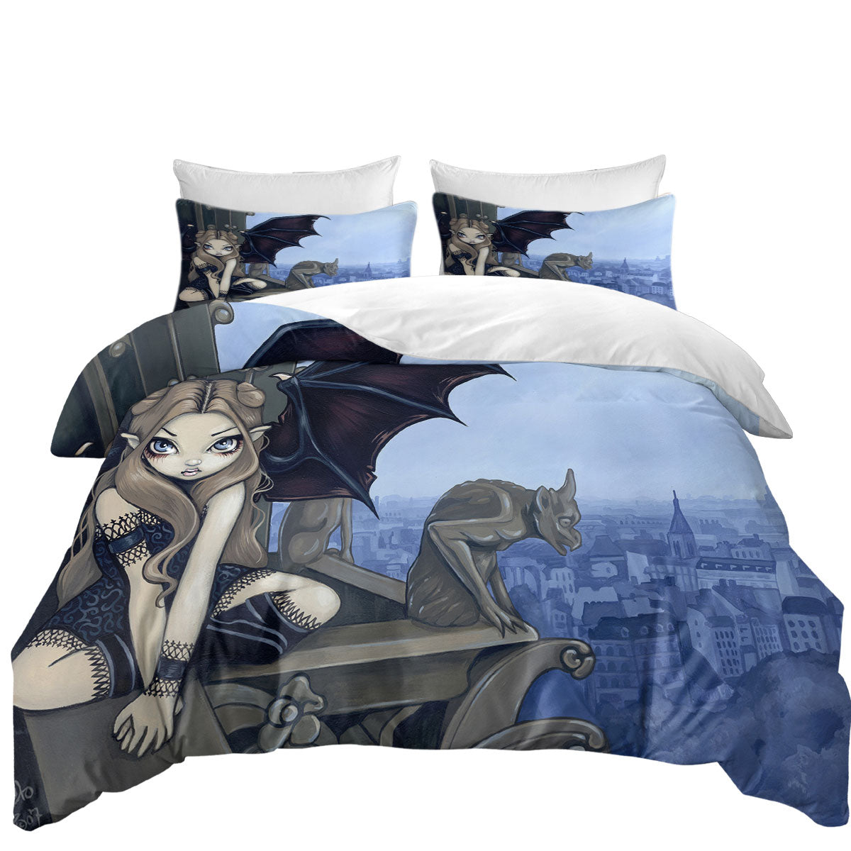 The Secret of Notre Dame Mysterious Gargoyle Fairy Duvet Cover