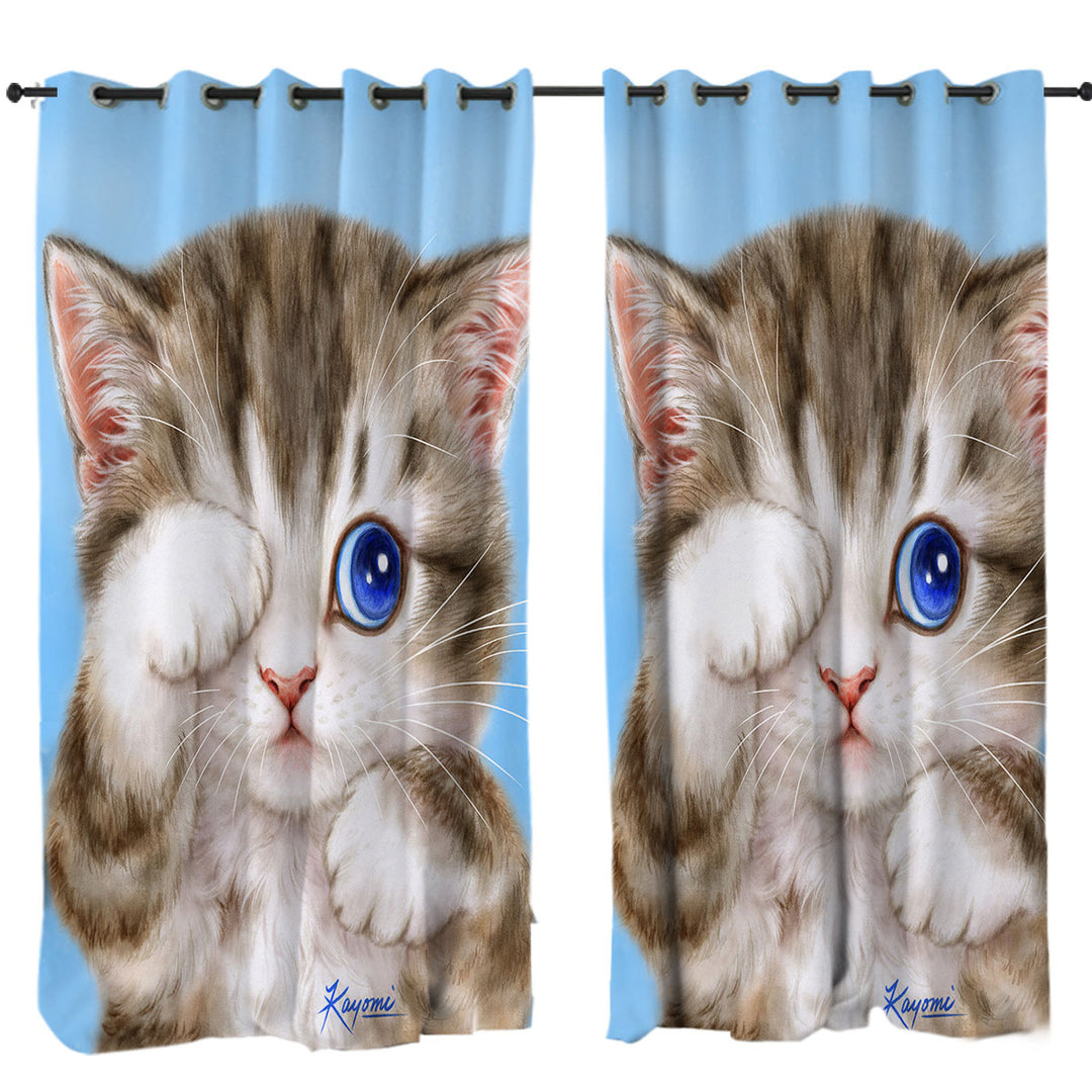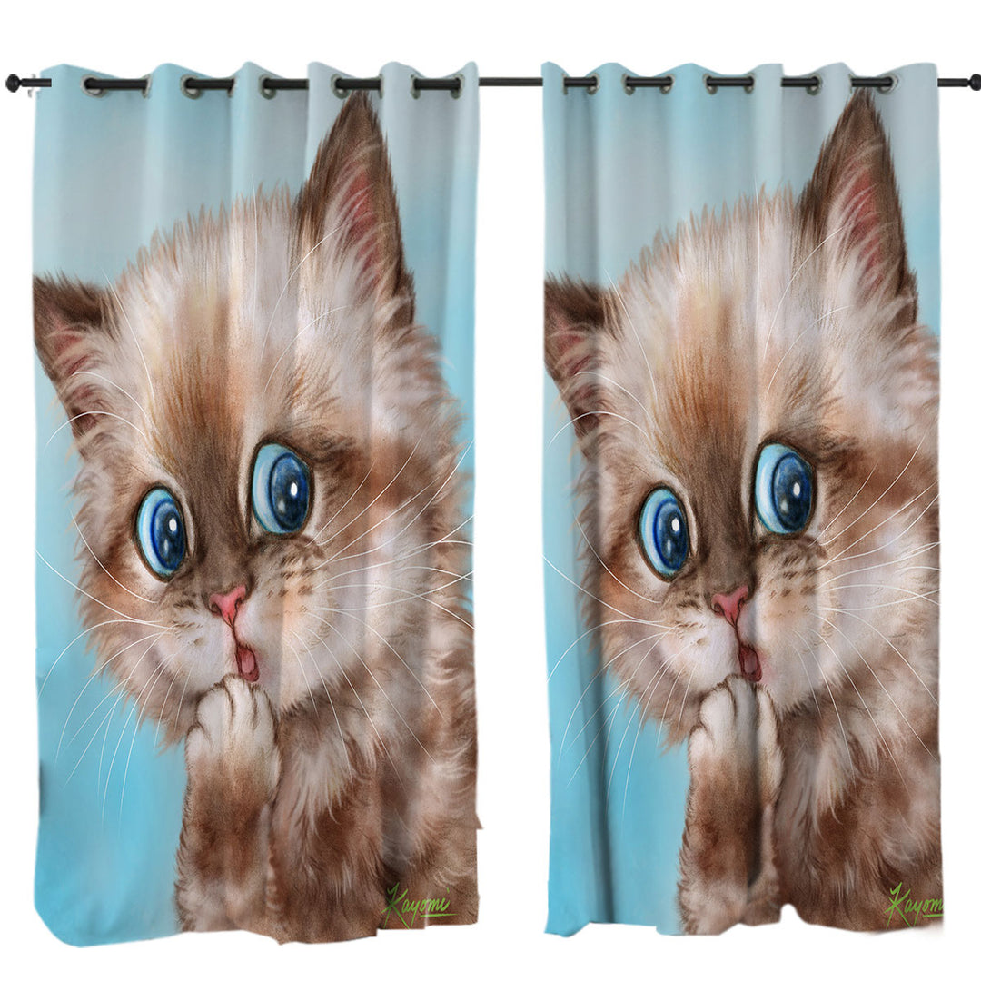 Adorable Baby Blue Eyes Kitty Cat Curtain