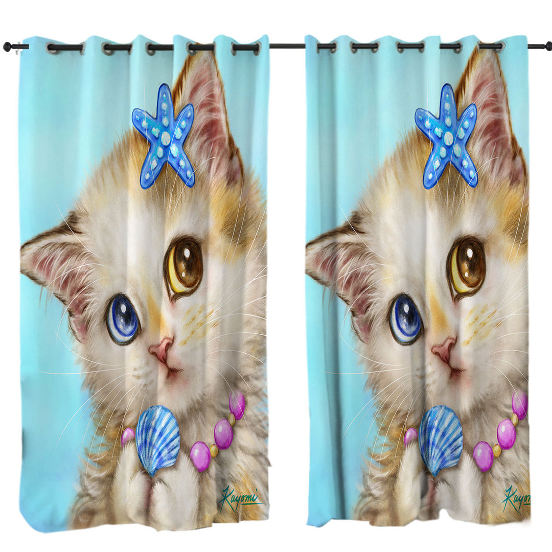 Adorable Cats Drawings Seashells Girly Kitten Curtain