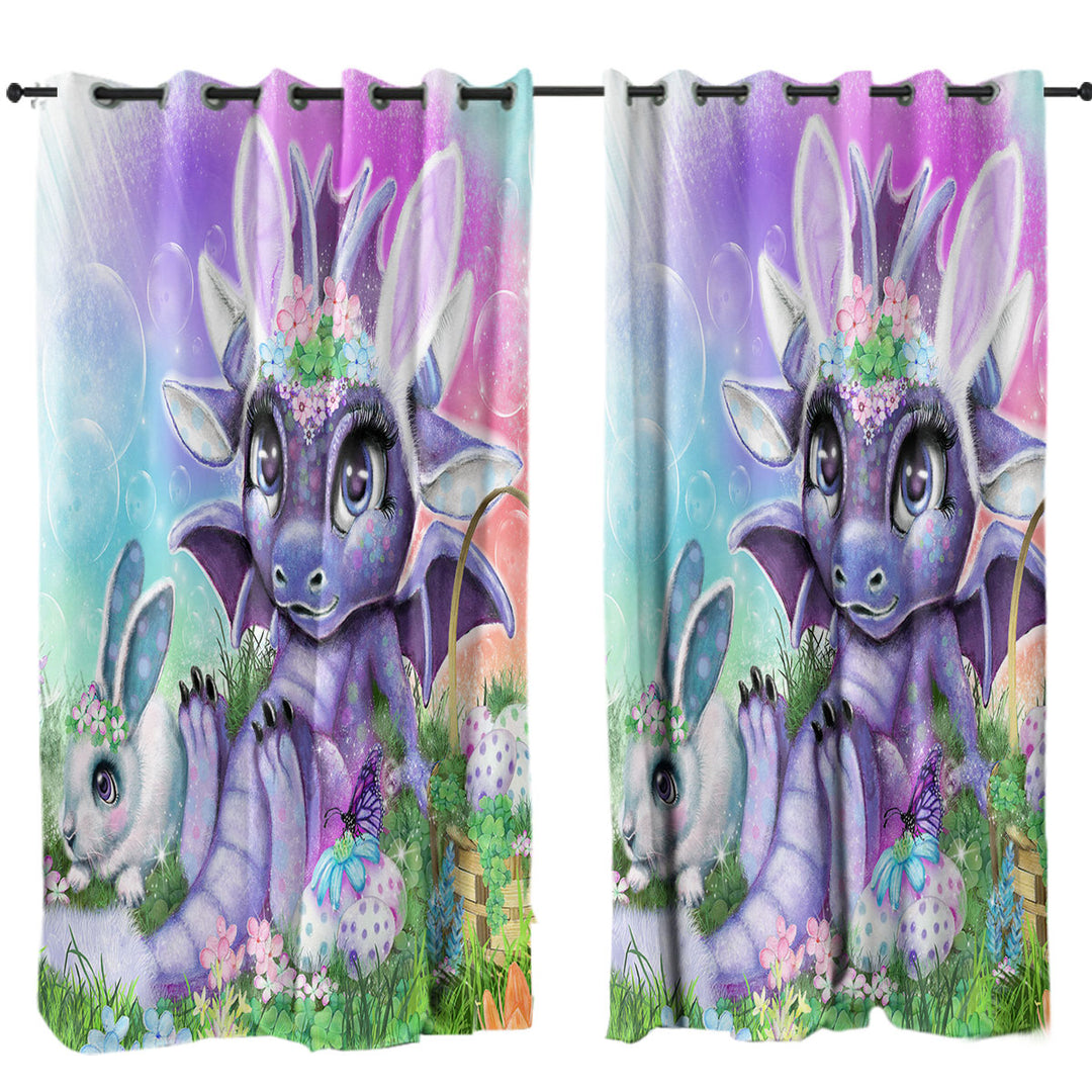 Adorable Garden Easter Bunny Lil Dragon Curtain