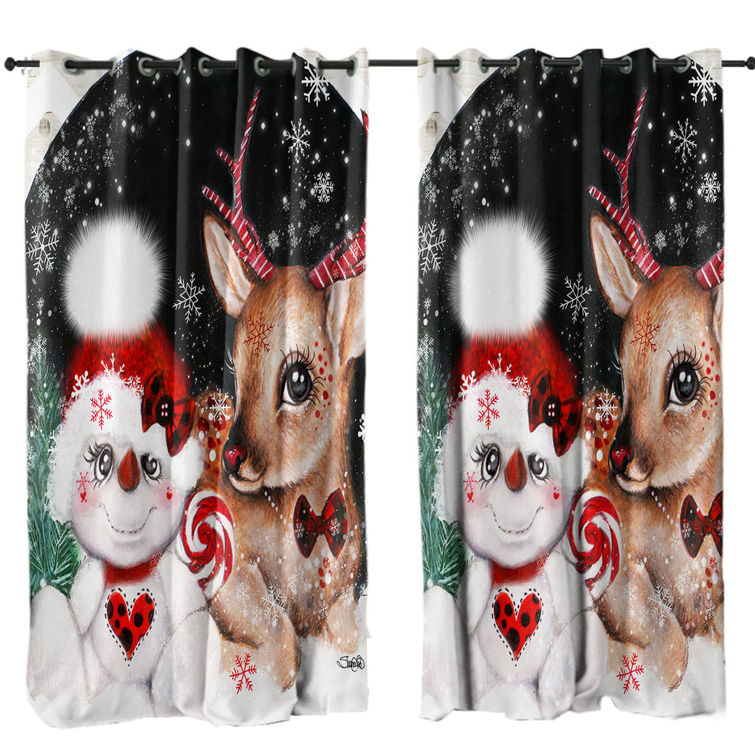 Adorable Christmas Snowflake Wishes Snowman Curtain