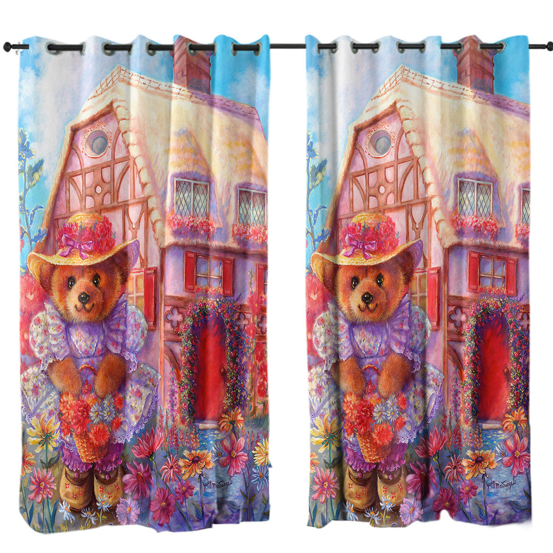 Adorable Kids Vintage Art Painting the Little Bear House Curtain