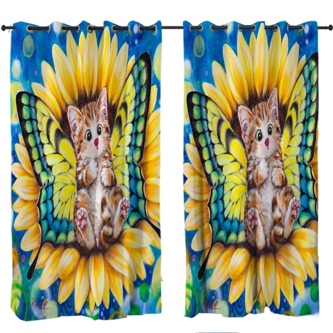 Adorable Kittens for Kids Sunflower Fairy Cat Curtain