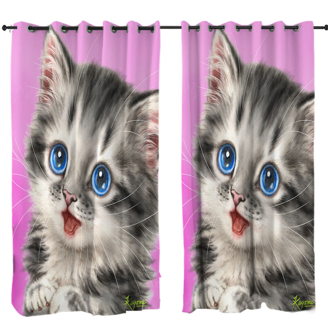 Adorable Painted Cats Baby Blue Eyes Grey Kitty Curtain