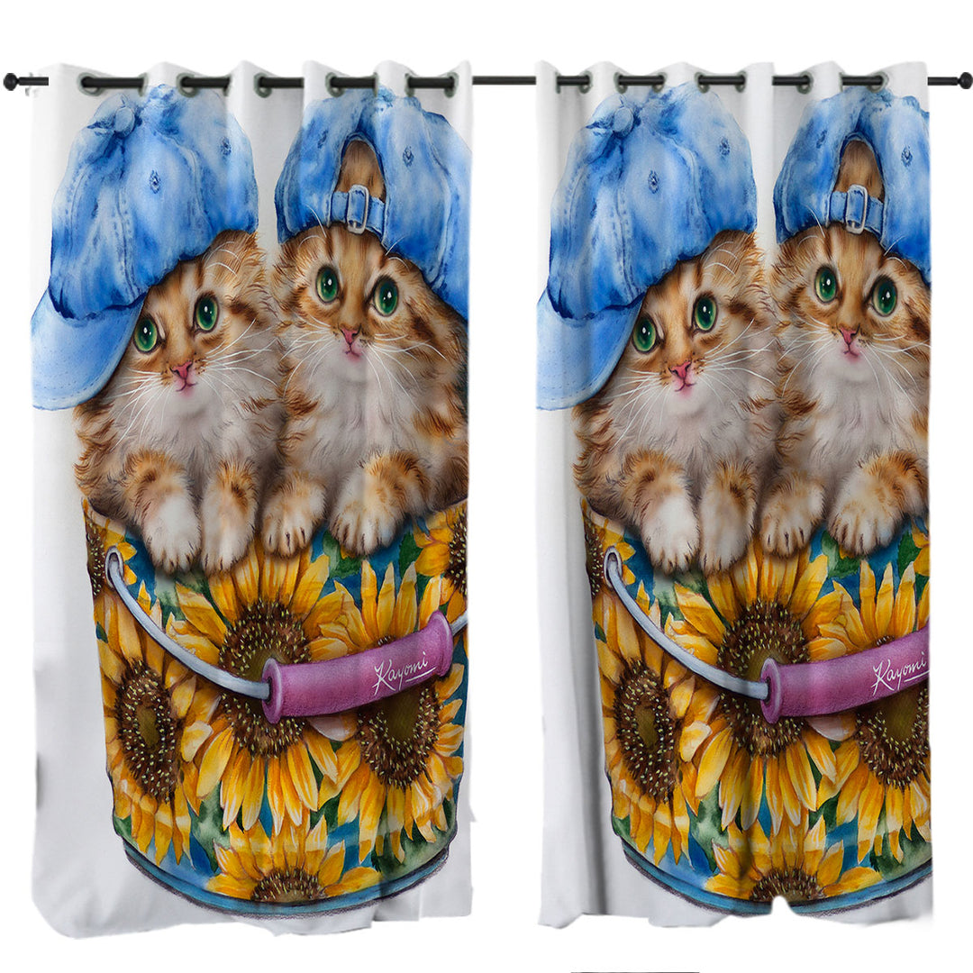 Adorable Funny Kittens Sunflower Bucket Curtain