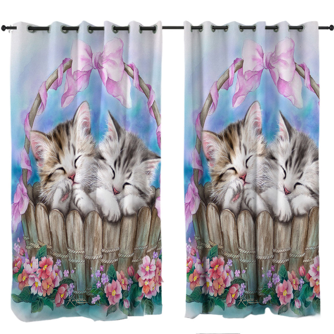 Adorable Kittens Peaceful Dream Cats in Basket Curtain
