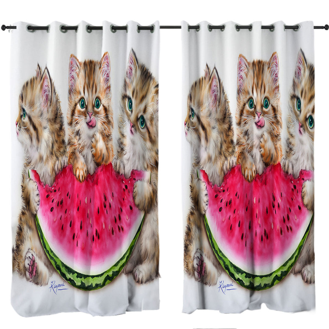 Adorable Funny Kittens Watermelon Summer Treat Curtain