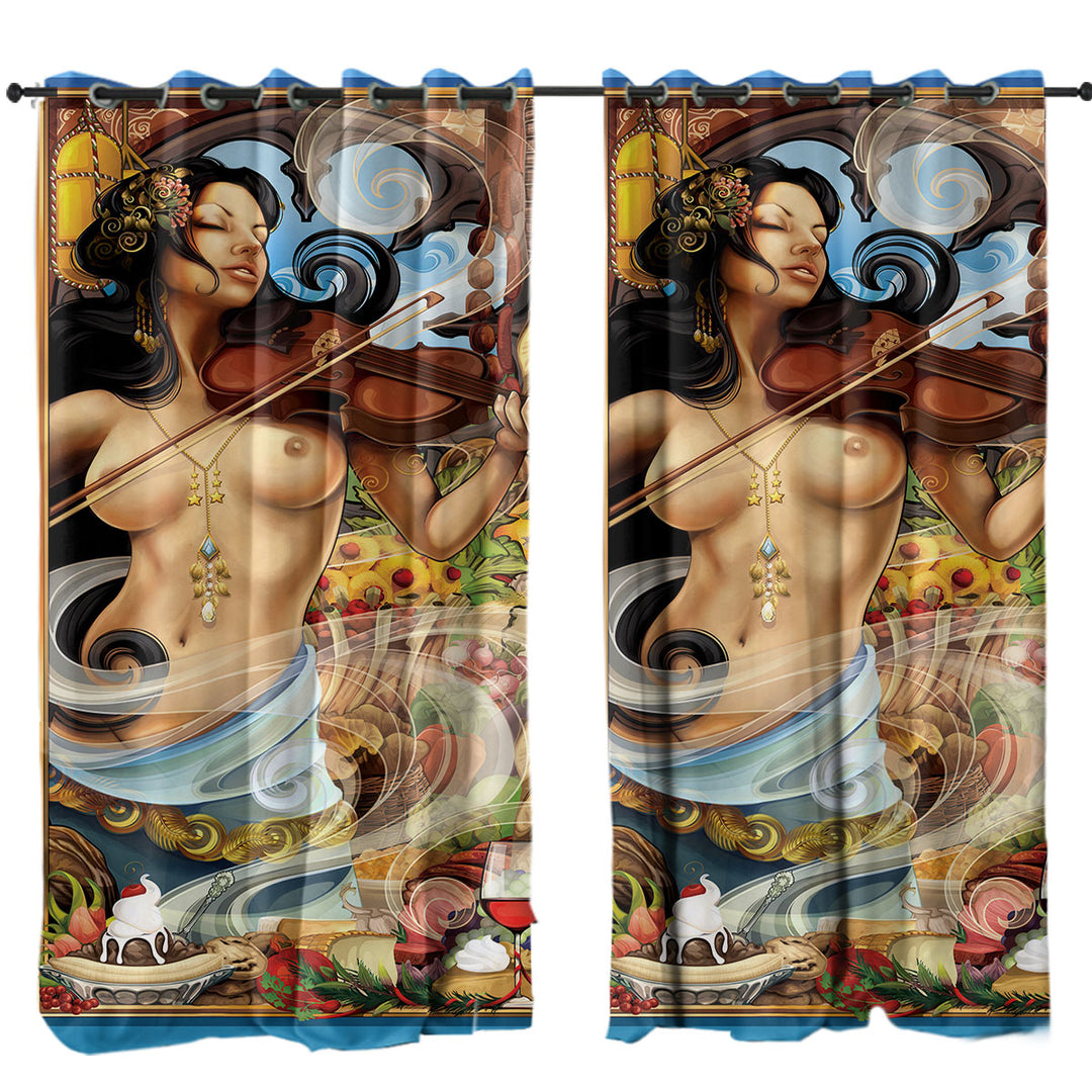 Sexy Violinist Woman Goddess of Fine Dining Curtain