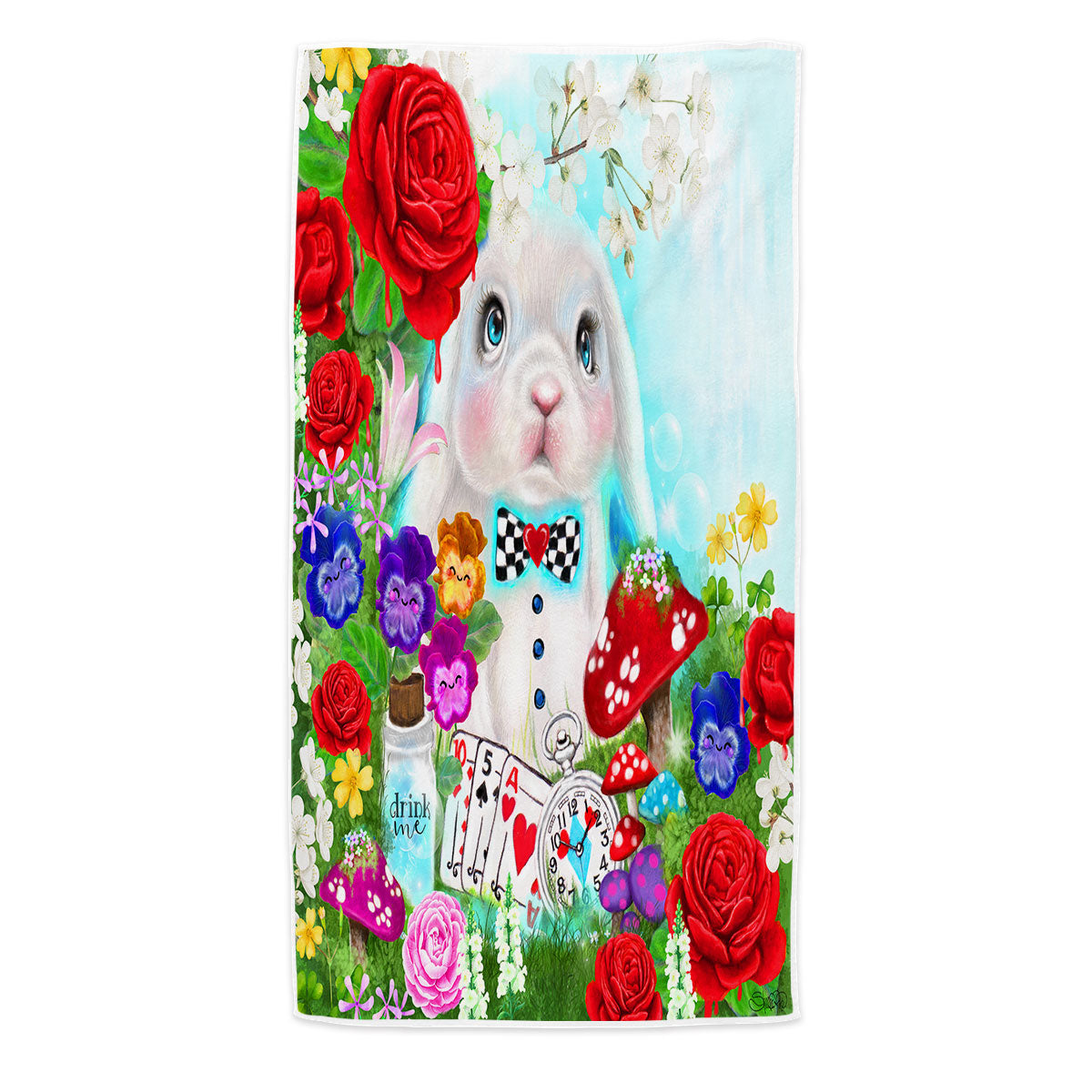 Adorable Kids Painting the White Rabbit Microfiber Beach Towel