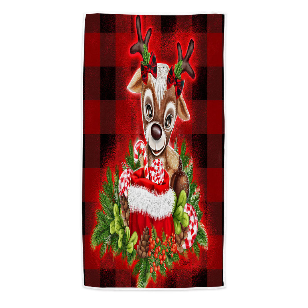 Christmas Plaid Cutie Reindeer Microfiber Beach Towel