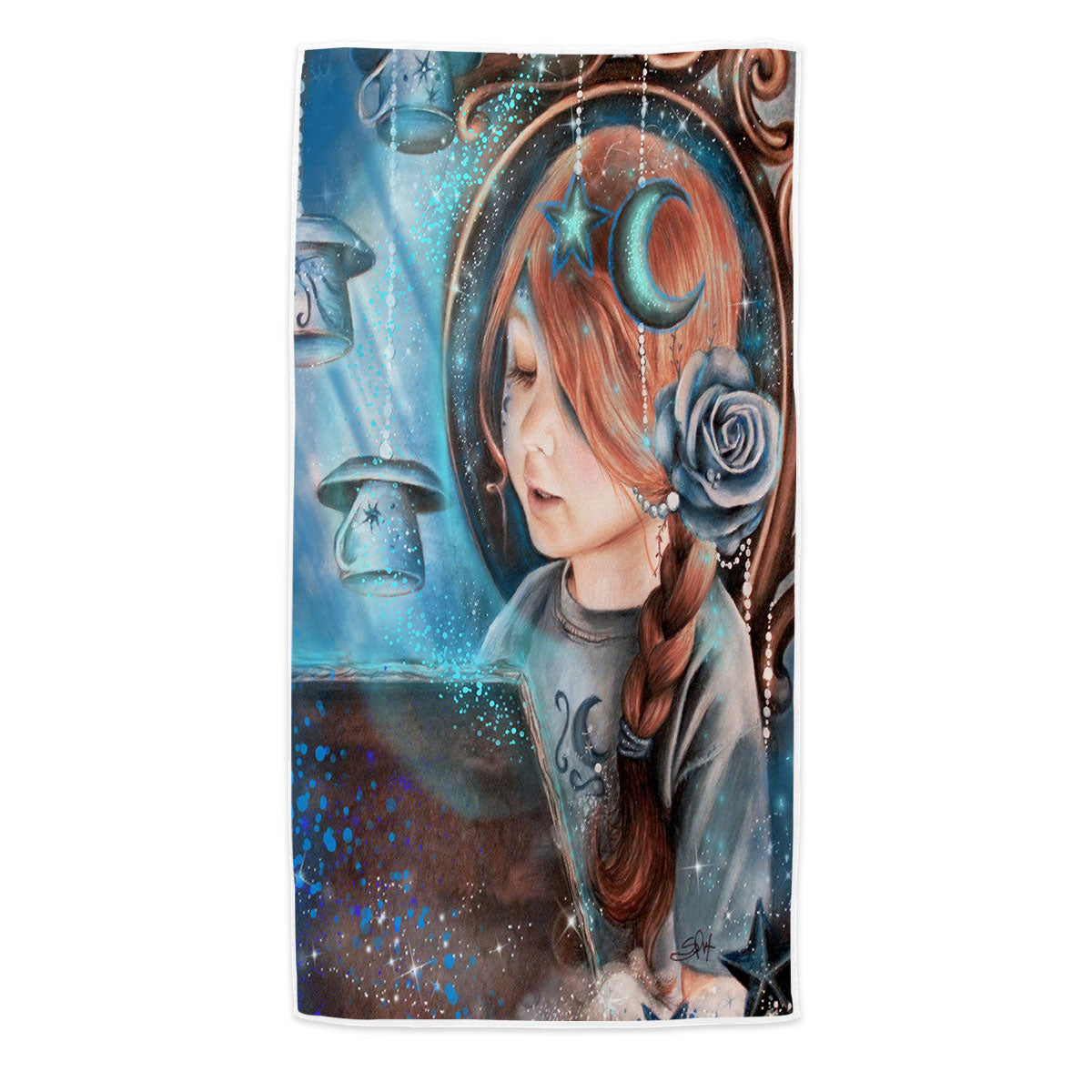 Cute Girl Night Read in the Moonlight Microfiber Beach Towel