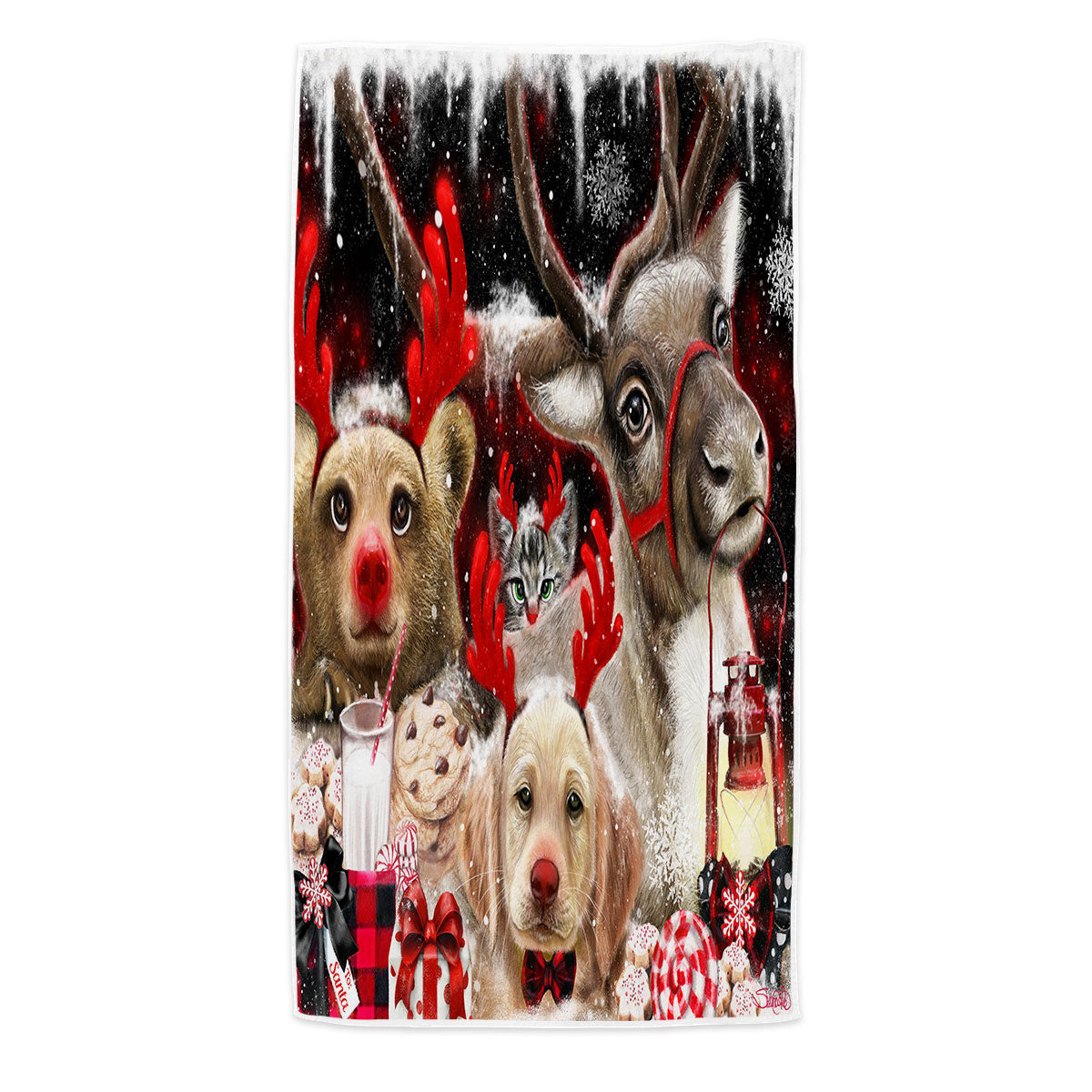 Funny Christmas Santas Reindeer Animals Microfiber Beach Towel