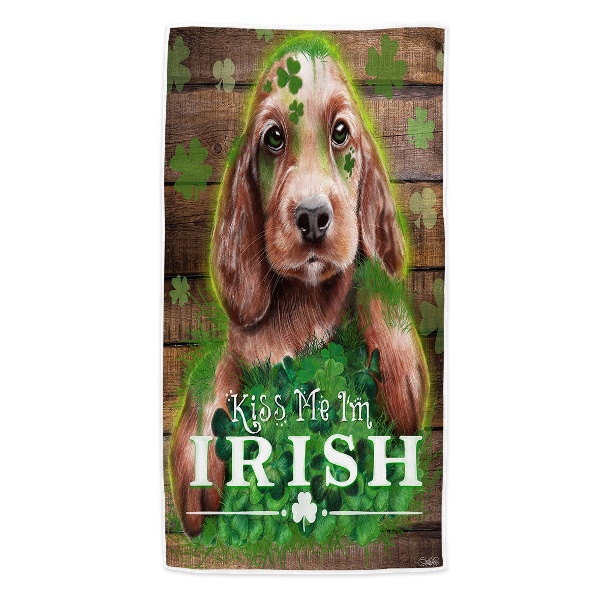 Funny Green Clover Kiss me I'm Irish Puppy Microfiber Beach Towel