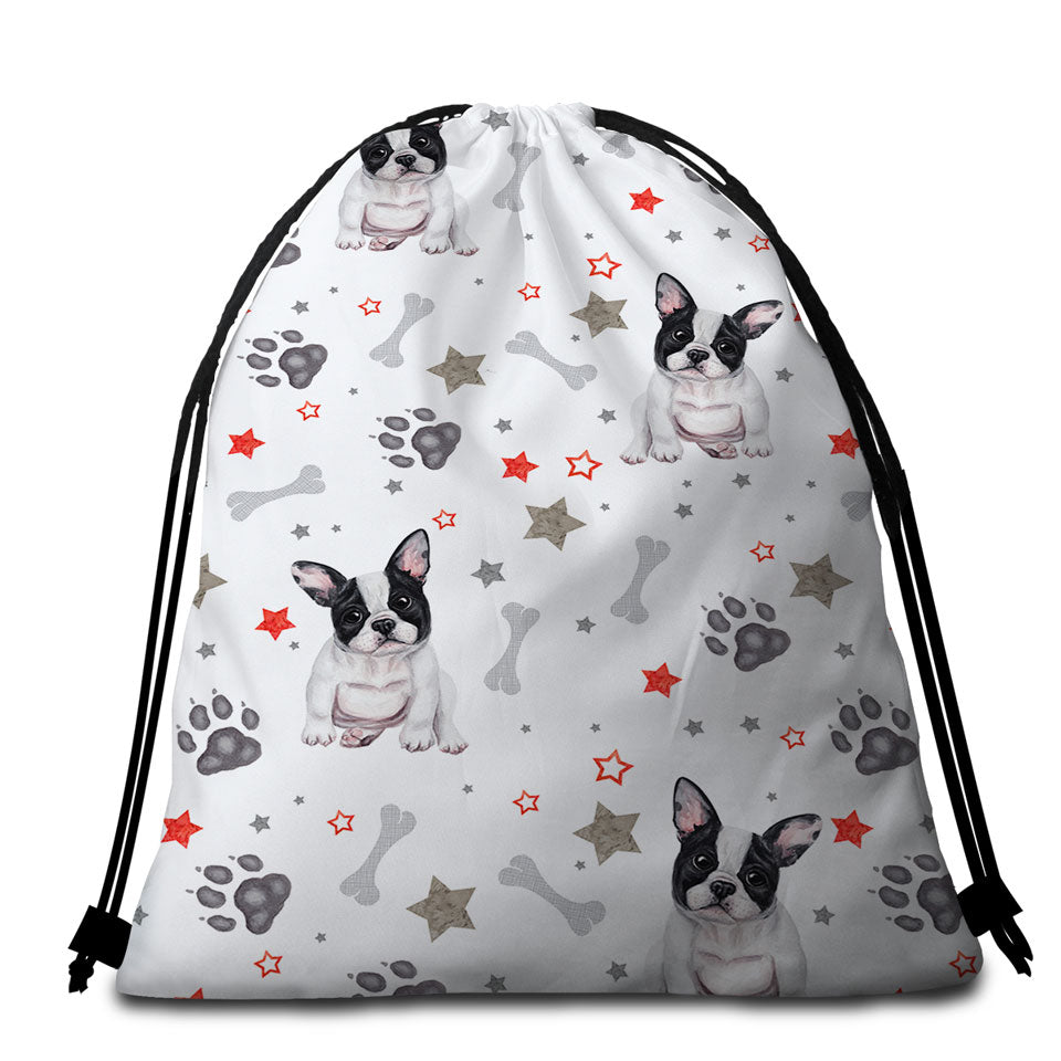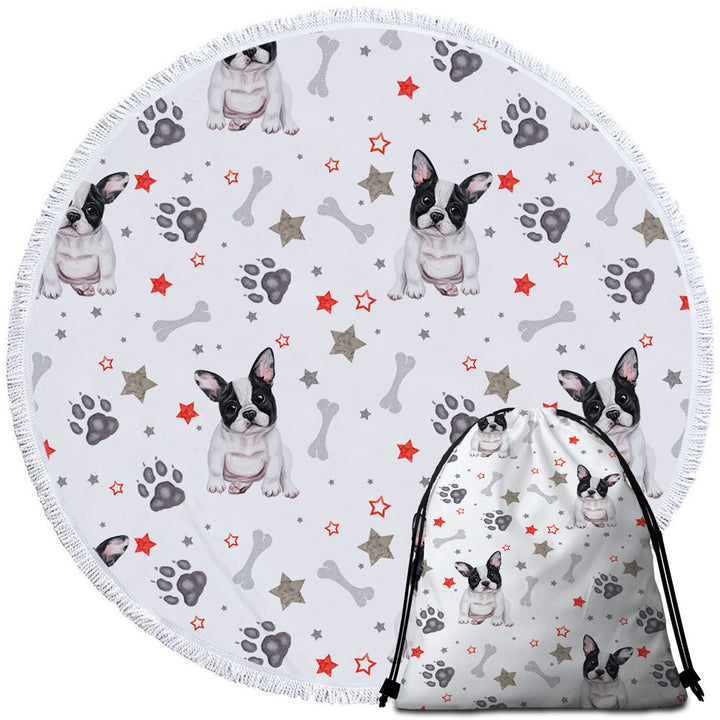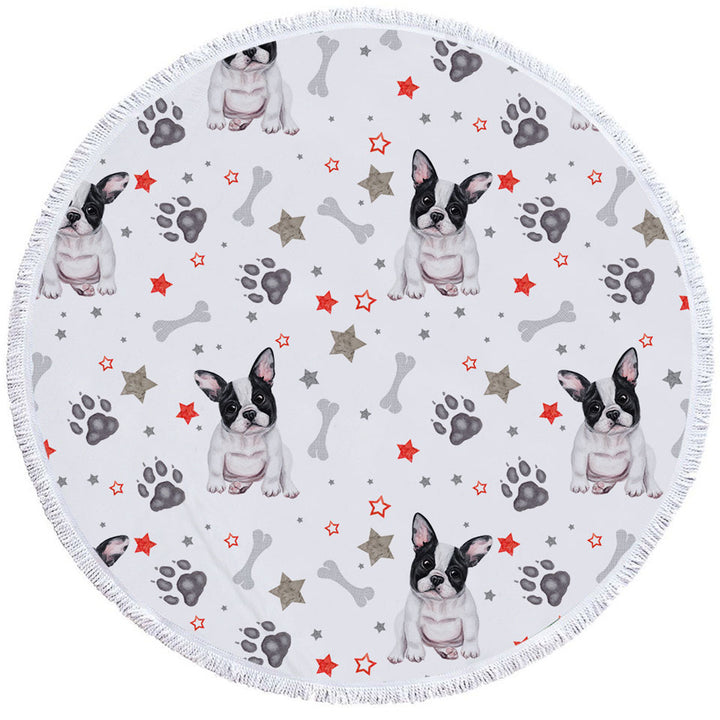 Cute French Bulldog Dog Paws and Bones Round Beach Towel