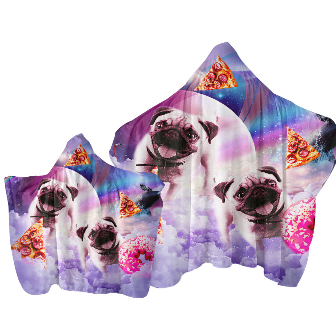 Cute Pugs Dogs in the Pizza Donut Space Towel with Hood