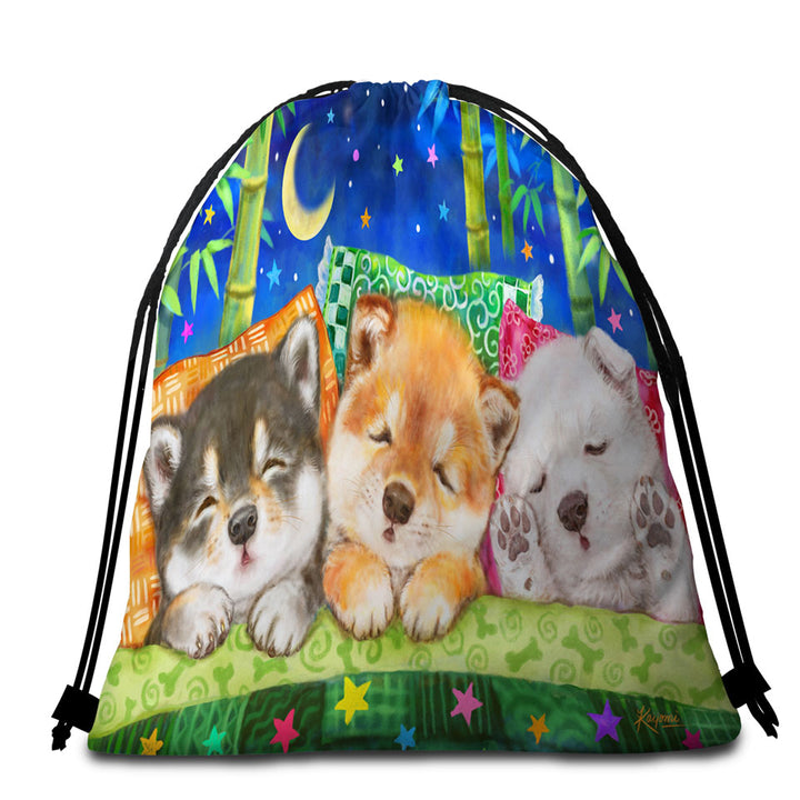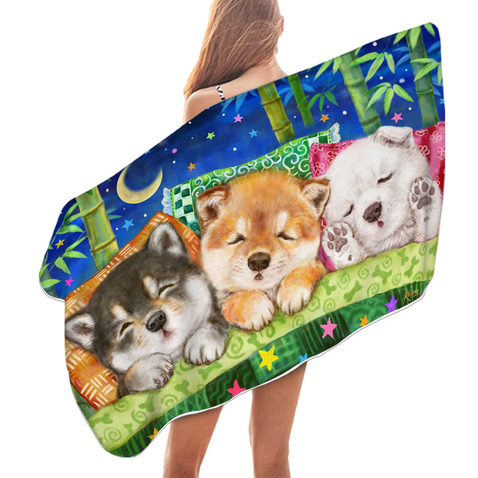 Cute Shiba Inu Dog Puppies Sleeping Microfiber Beach Towel