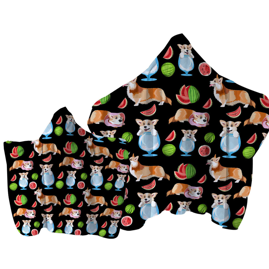 Funny and Cute Corgi Dog Scenes Towel with Hood