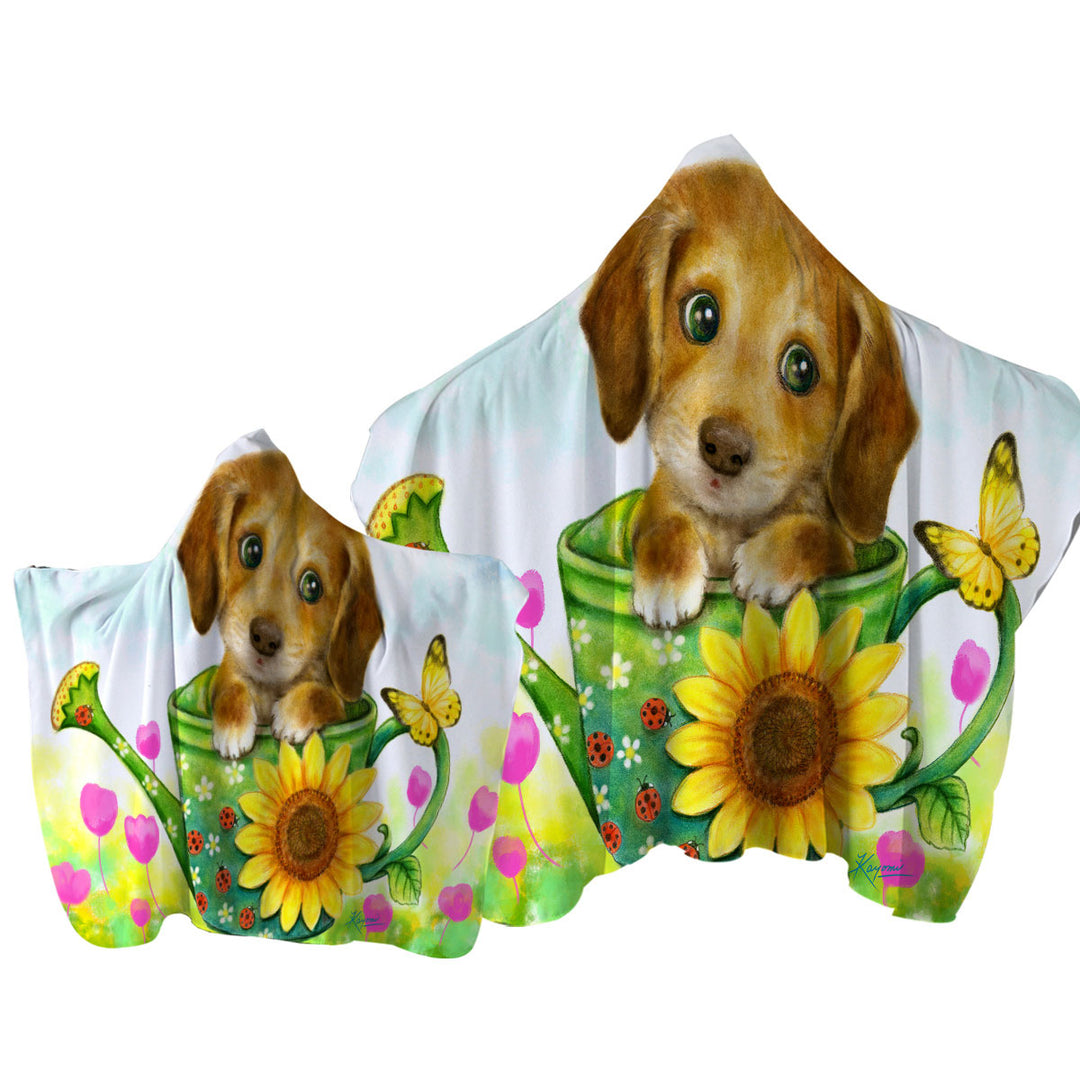 Kids Animal Dogs Art Cute Dachshund in Garden Towel with Hood