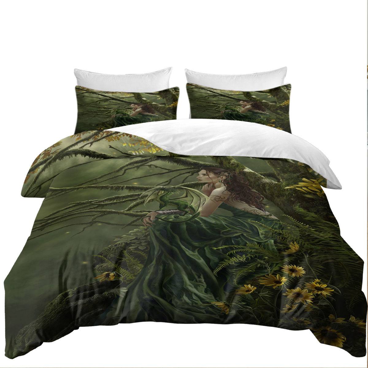 Fantasy Art Queen of Fate and Dragon Duvet Cover