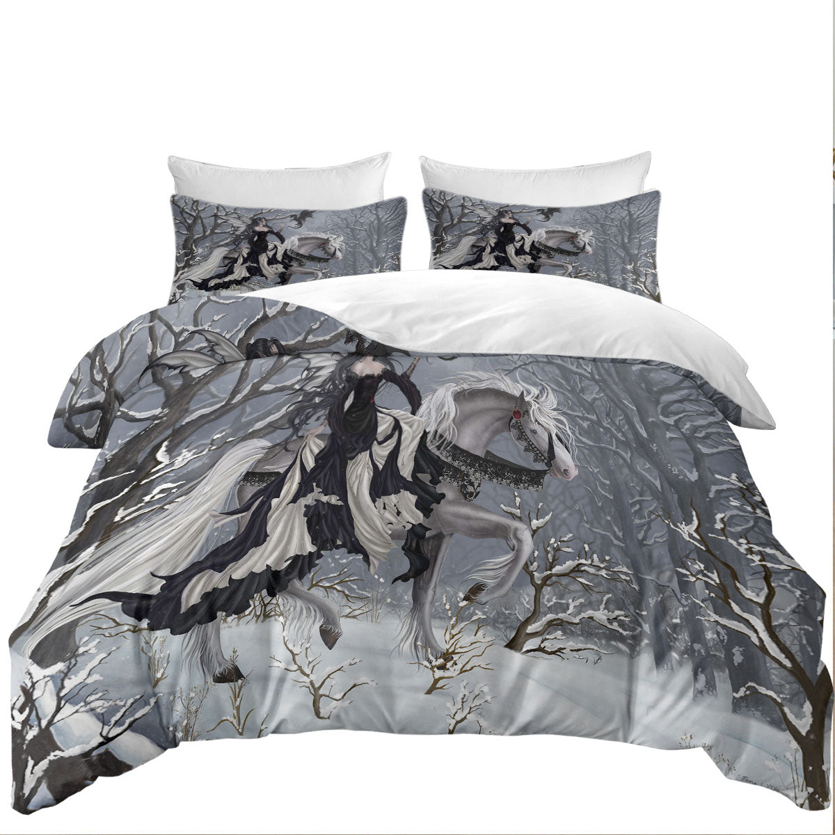 Fantasy Art the Dark Angel and Her Little Dragon Duvet Cover