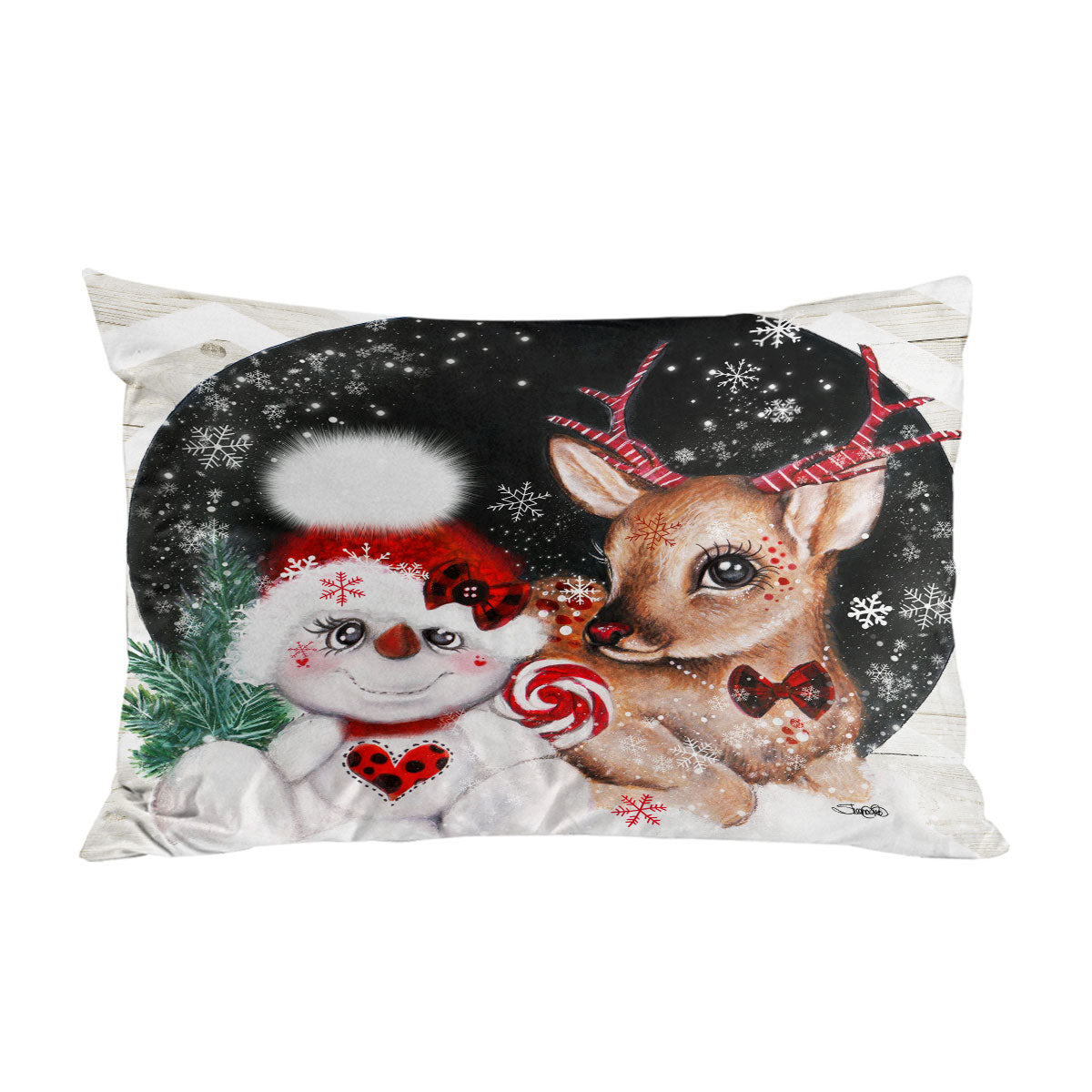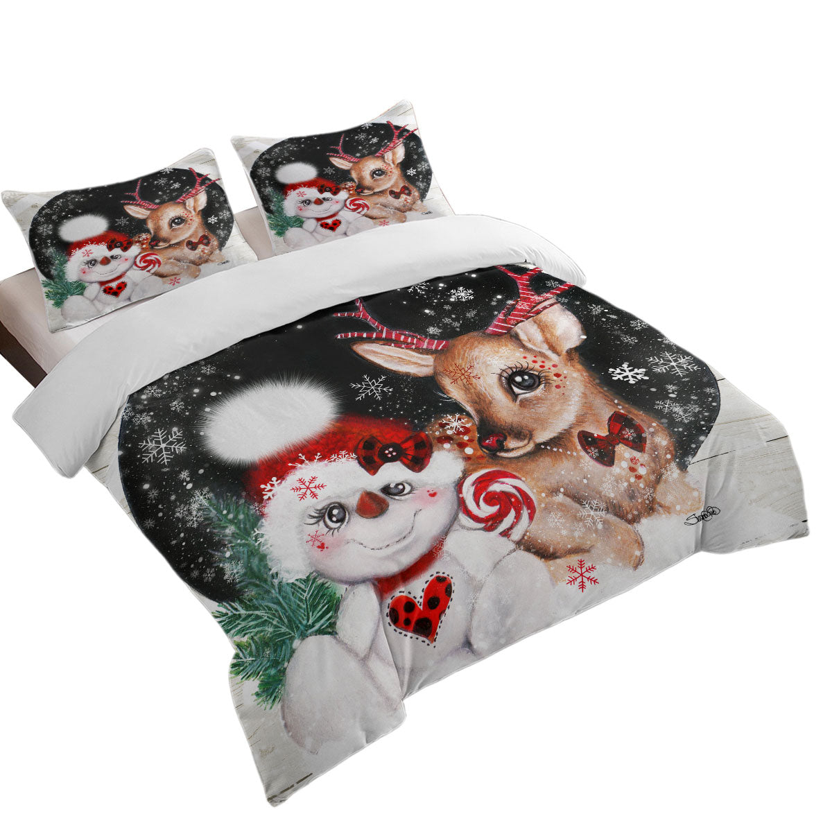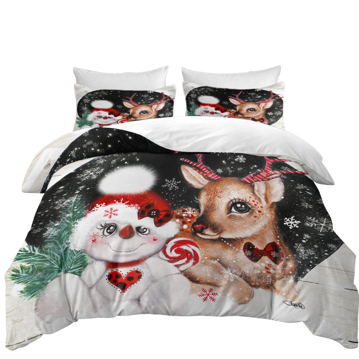 Adorable Christmas Reindeer and Snowman Duvet Cover