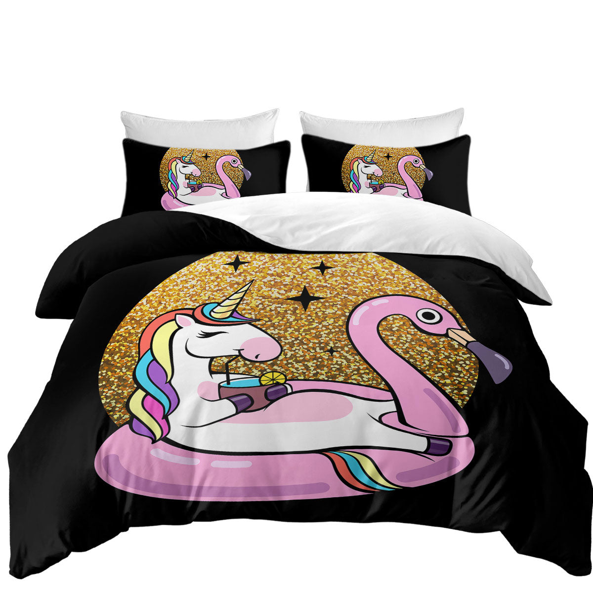 Cool Unicorn Chilling on Flamingo Float Duvet Cover