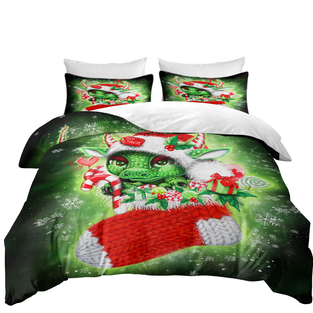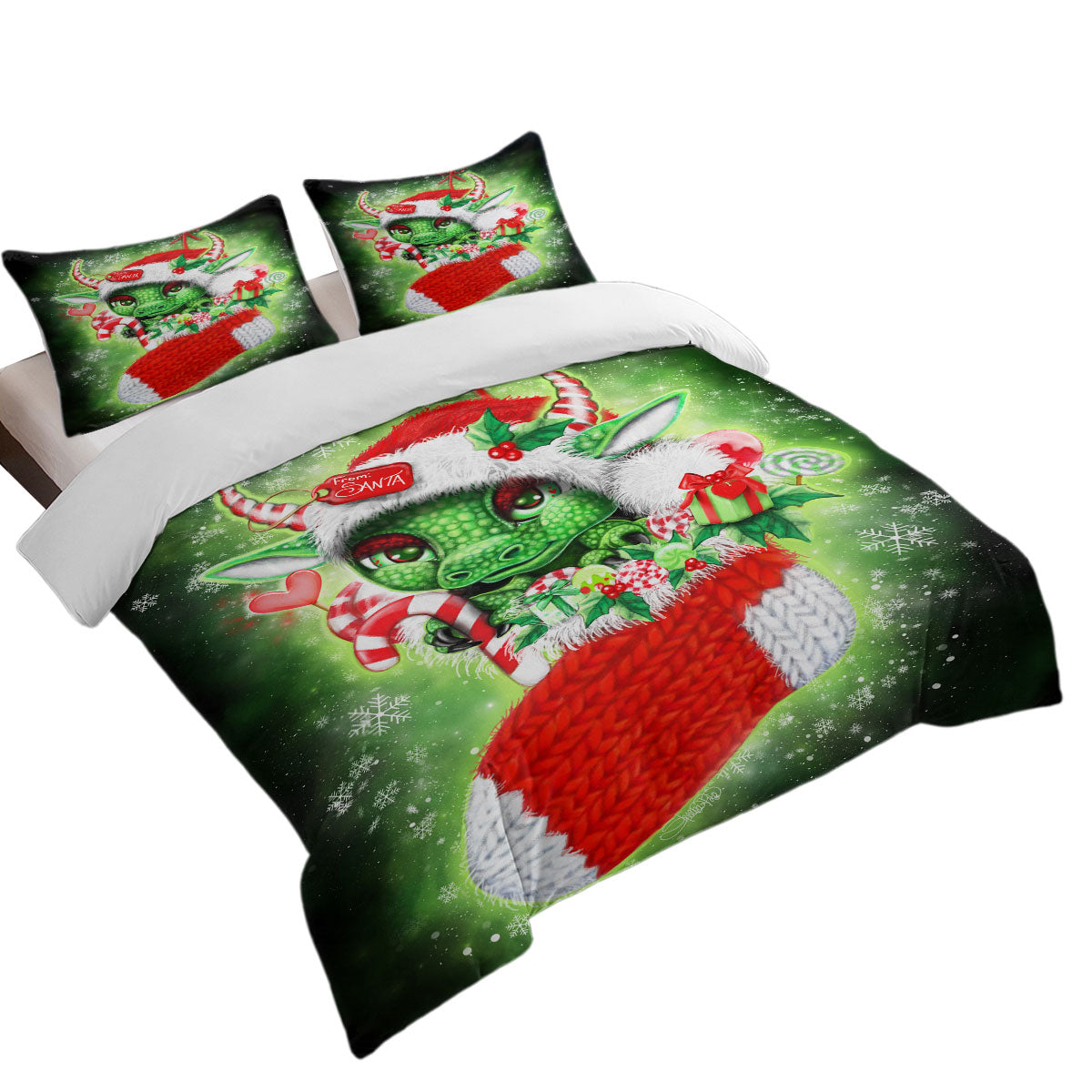 Cute Christmas Stocking Stuffer Lil Dragon Duvet Covers